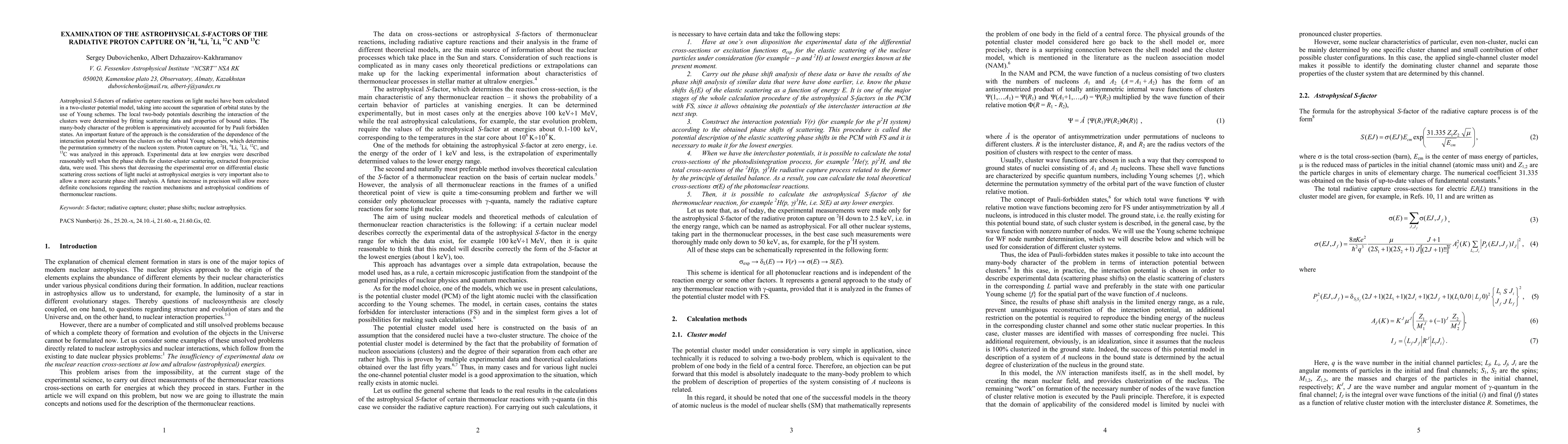 This paper calculates astrophysical S-factors for radiative proton capture on light nuclei using a two-cluster potential model, emphasizing the interaction potential's dependence on orbital symmetry. The model fits scattering data and bound state properties, and it reasonably describes experimental data at low energies, highlighting the importance of reducing experimental error for more precise analysis.