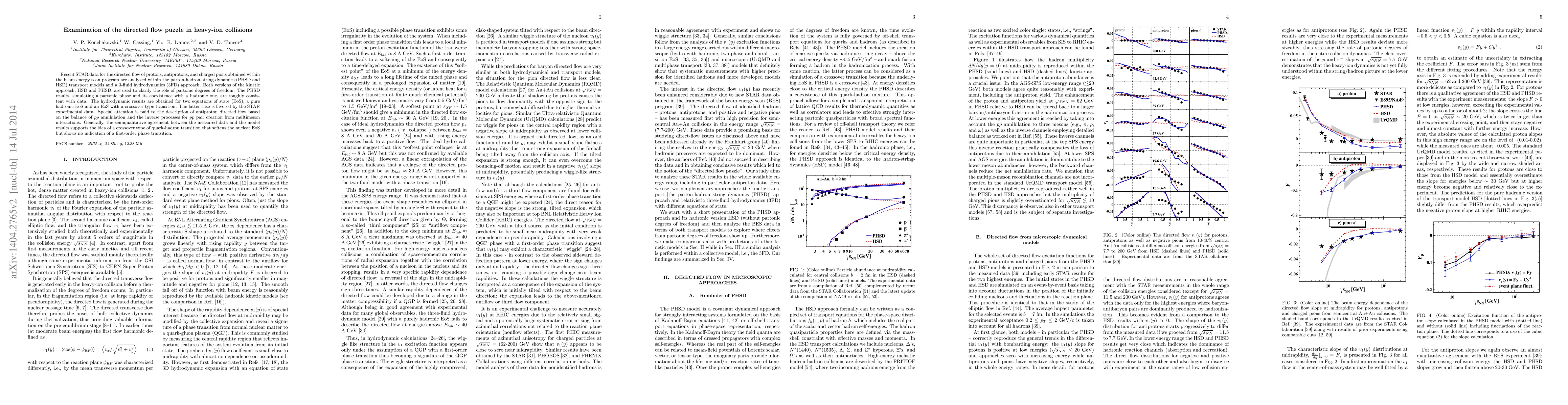 Recent STAR data for the directed flow of protons, antiprotons, and charged pions obtained within the beam energy scan program are analyzed within the parton-hadron-string-dynamics (PHSD and HSD) transport models and a 3-fluid hydrodynamics (3FD) approach. Both versions of the kinetic approach, HSD and PHSD, are used to clarify the role of partonic degrees of freedom. The PHSD results, simulating a partonic phase and its coexistence with a hadronic one, are roughly consistent with data. The hydrodynamic results are obtained for two equations of state (EoS), a pure hadronic EoS and an EoS with a crossover type transition. The latter case is favored by the STAR experimental data. Special attention is paid to the description of antiproton directed flow based on the balance of $p\bar{p}$ annihilation and the inverse processes for $p\bar{p}$ pair creation from multimeson interactions. Generally, the semiqualitative agreement between the measured data and the model results supports the idea of a crossover type of quark-hadron transition that softens the nuclear EoS but shows no indication of a first-order phase transition.