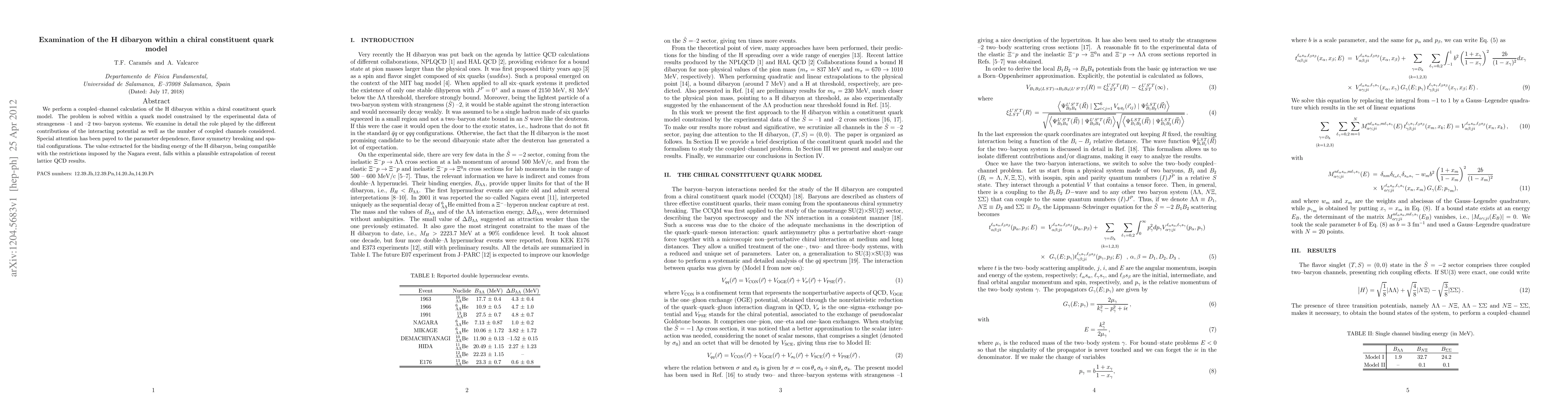 This paper investigates the H dibaryon using a chiral constituent quark model, focusing on the binding energy and the role of various potential contributions and coupled channels. The findings align with experimental data and lattice QCD results, suggesting a plausible binding energy for the H dibaryon.