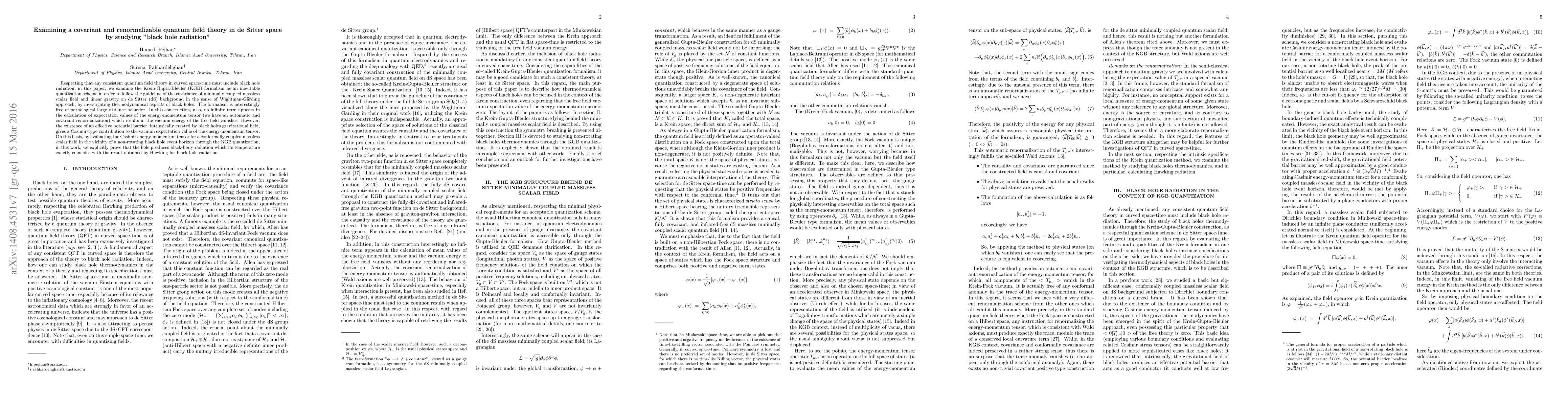 This paper explores a covariant and renormalizable quantum field theory in de Sitter space using the Krein-Gupta-Bleuler formalism, demonstrating that black holes in this framework emit black-body radiation with a temperature matching Hawking's prediction, and revealing an effective potential barrier contributing to the vacuum expectation value of the energy-momentum tensor.