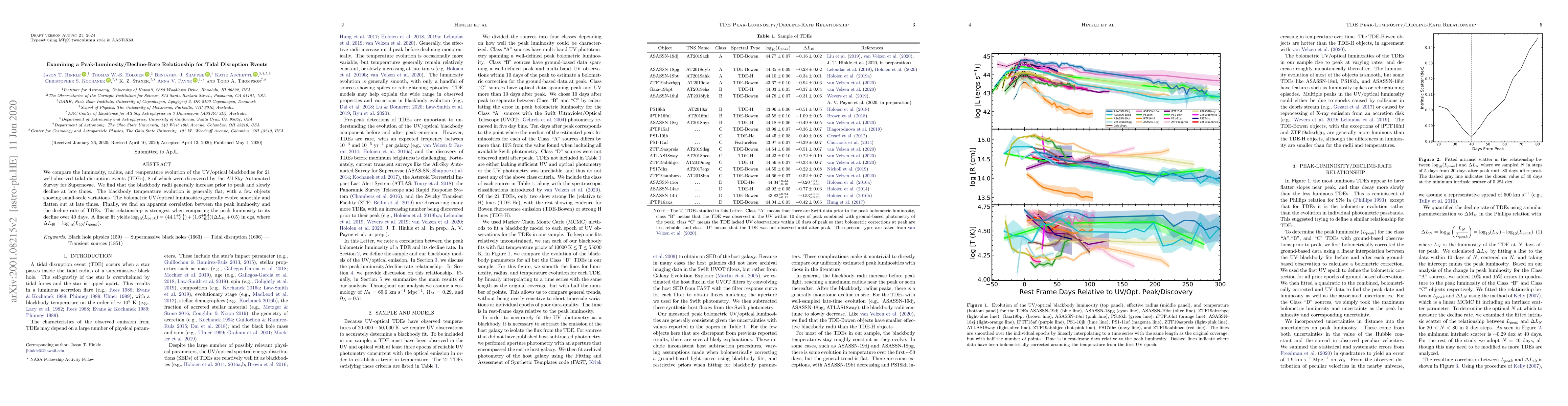 This study investigates the luminosity, radius, and temperature evolution of 21 tidal disruption events (TDEs), revealing a correlation between peak luminosity and decline rate over 40 days, with a linear relationship of $\log_{10}( L_{peak}) = (44.1^{+0.1}_{-0.1}) + (1.6^{+0.4}_{-0.2})(\Delta L_{40} + 0.5)$.
