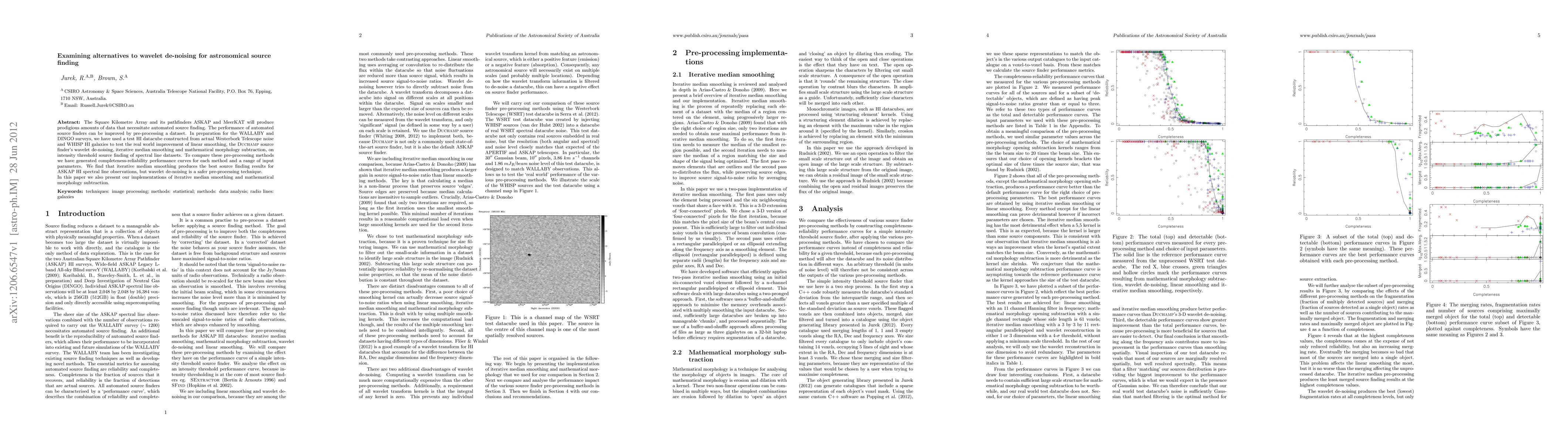This paper evaluates various pre-processing techniques for improving automated source finding in astronomical data, particularly for HI spectral line observations from ASKAP. Iterative median smoothing is found to yield the best results, while wavelet de-noising is deemed safer. The study compares these methods using completeness-reliability performance curves.