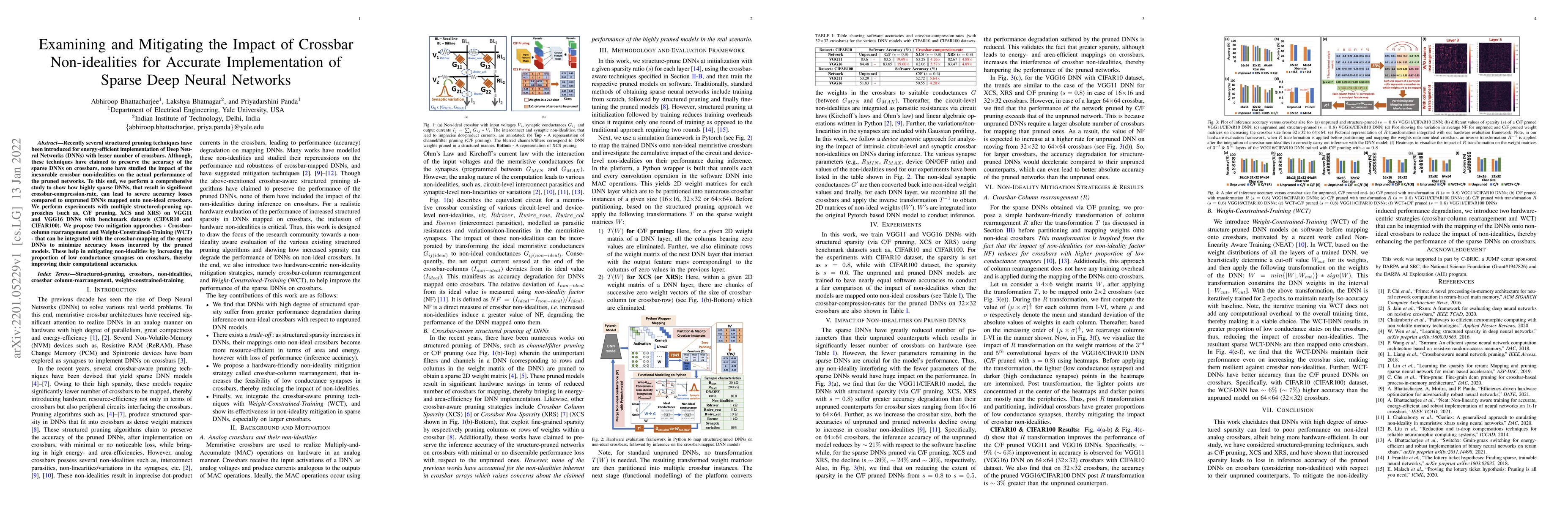 This paper investigates the impact of crossbar non-idealities on the performance of sparse deep neural networks (DNNs) and proposes methods to mitigate accuracy losses. It finds that highly sparse DNNs can suffer significant accuracy drops due to crossbar imperfections, and introduces Crossbar column rearrangement and Weight-Constrained-Training to improve computational accuracy.