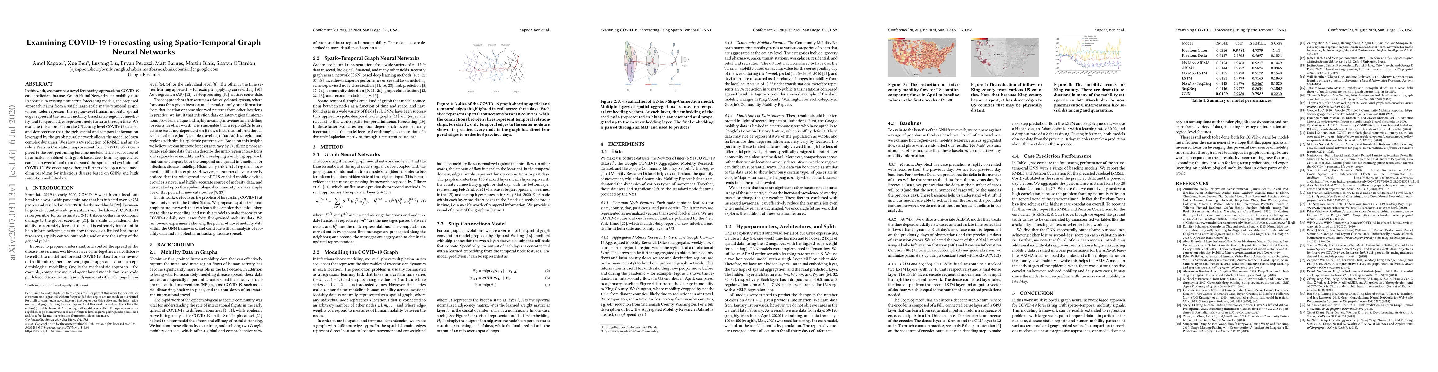 This study proposes a novel COVID-19 forecasting model using Graph Neural Networks (GNNs) and mobility data, showing a 6% reduction in RMSLE and improved Pearson Correlation compared to baseline models, by leveraging rich spatial and temporal information from a large-scale spatio-temporal graph. The approach's success suggests GNNs and high-resolution mobility data as a powerful tool for infectious disease modeling.