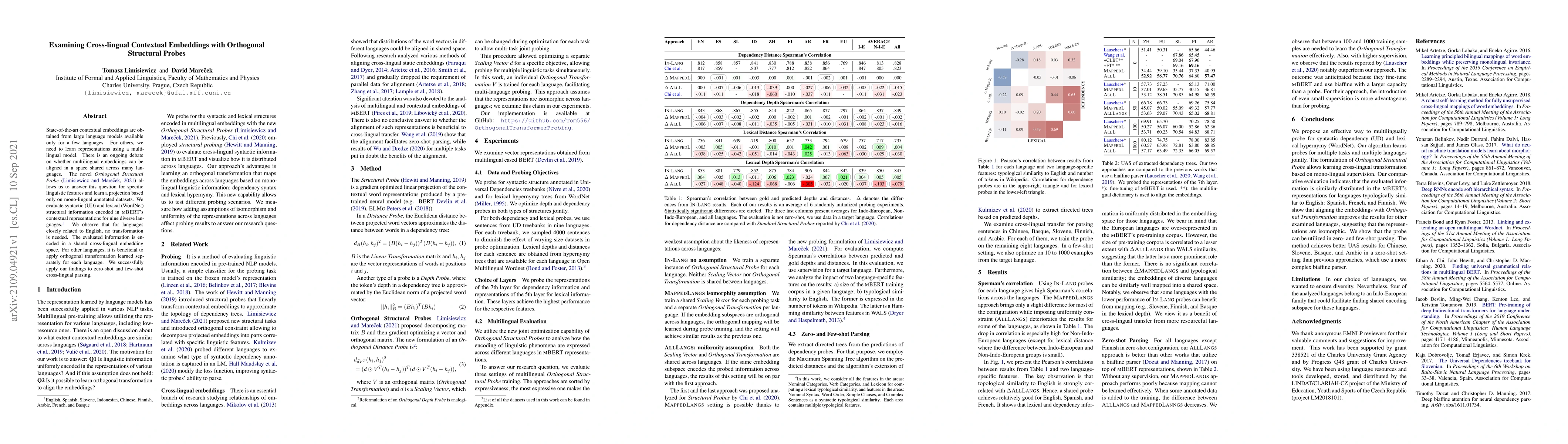 This paper investigates the alignment of cross-lingual contextual embeddings using the Orthogonal Structural Probe method. It finds that closely related languages share a common embedding space without transformation, while others benefit from language-specific orthogonal transformations, enhancing zero-shot and few-shot cross-lingual parsing.