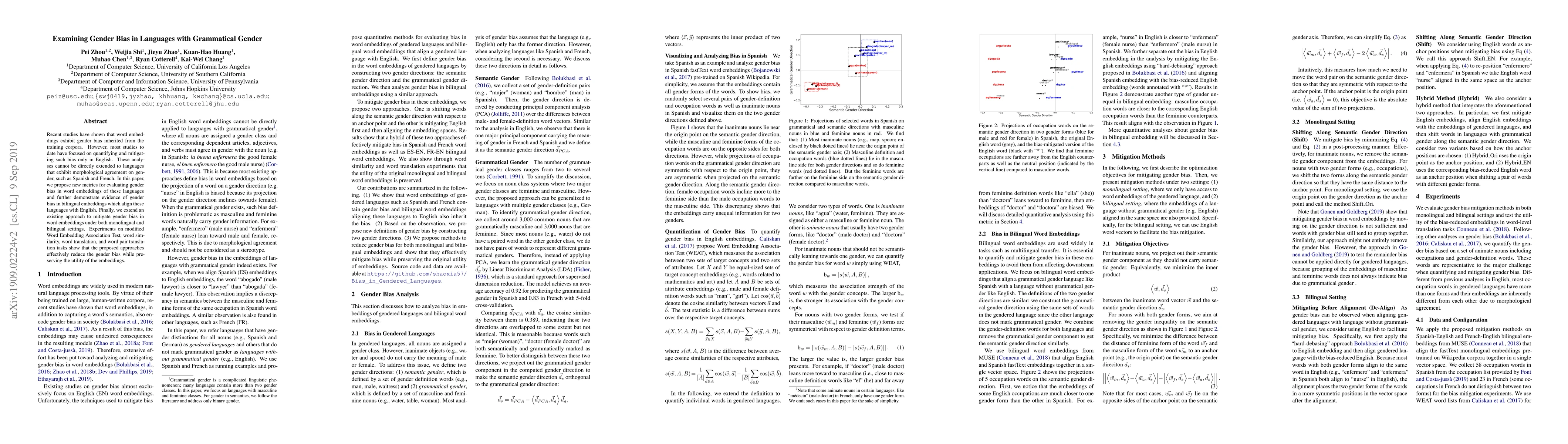 This paper introduces new metrics to evaluate gender bias in word embeddings for languages with grammatical gender, demonstrating such bias in bilingual embeddings aligning these languages with English. It also proposes an extended method to mitigate bias, showing effectiveness in reducing bias while maintaining embedding utility.