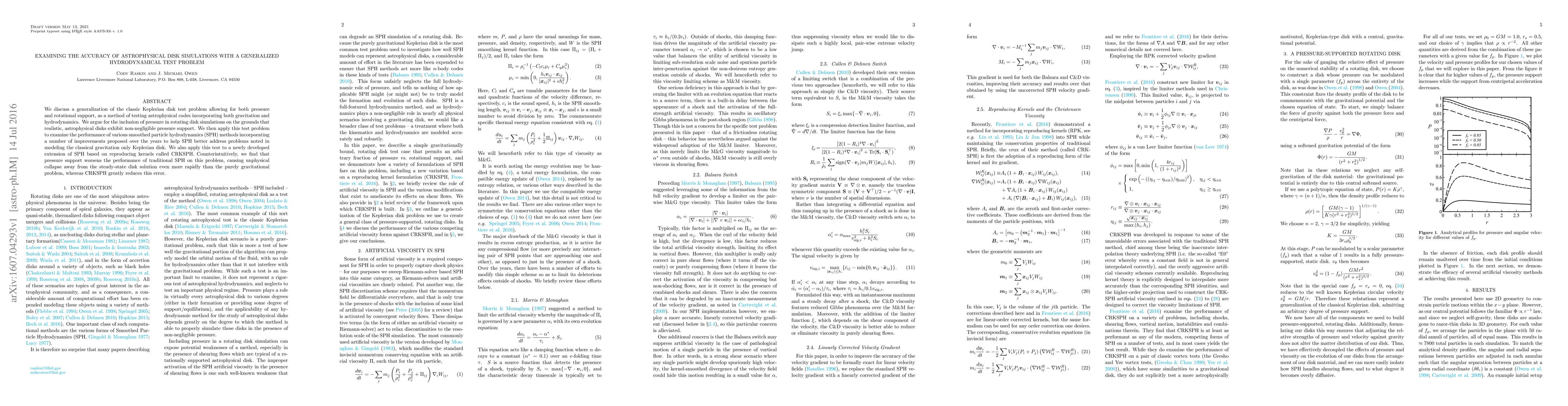 This paper generalizes the Keplerian disk test problem to include pressure and rotational support, evaluating the accuracy of various smoothed particle hydrodynamics (SPH) methods. Surprisingly, traditional SPH performs worse with pressure support, leading to unphysical collapse, while a new CRKSPH extension significantly reduces this error.