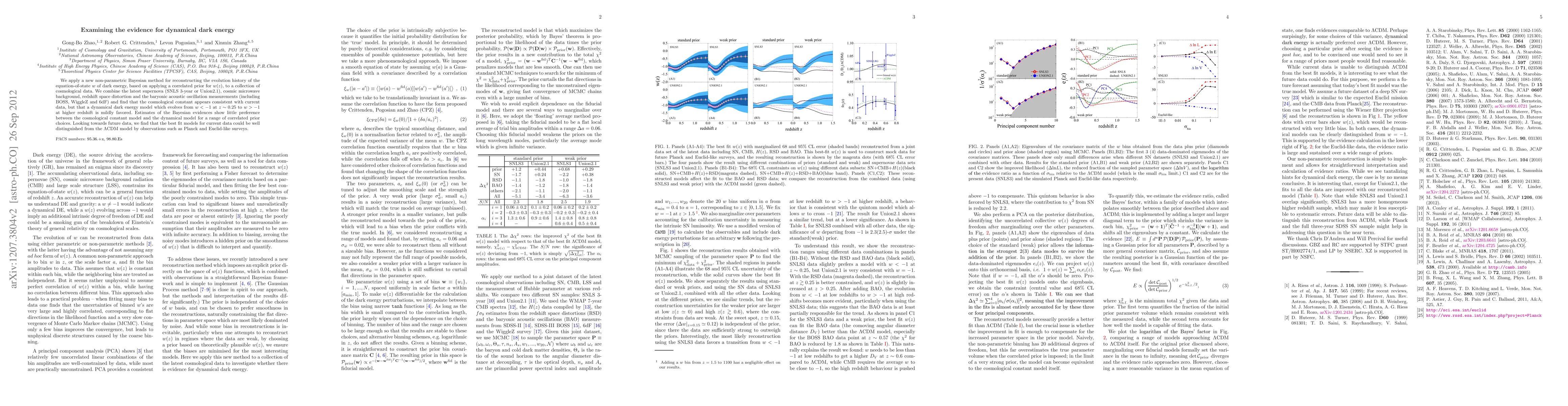 We apply a new non-parametric Bayesian method for reconstructing the evolution history of the equation-of-state $w$ of dark energy, based on applying a correlated prior for $w(z)$, to a collection of cosmological data. We combine the latest supernova (SNLS 3-year or Union2.1), cosmic microwave background, redshift space distortion and the baryonic acoustic oscillation measurements (including BOSS, WiggleZ and 6dF) and find that the cosmological constant appears consistent with current data, but that a dynamical dark energy model which evolves from $w<-1$ at $z\sim0.25$ to $w > -1$ at higher redshift is mildly favored. Estimates of the Bayesian evidences show little preference between the cosmological constant model and the dynamical model for a range of correlated prior choices. Looking towards future data, we find that the best fit models for current data could be well distinguished from the $\Lambda$CDM model by observations such as Planck and Euclid-like surveys.