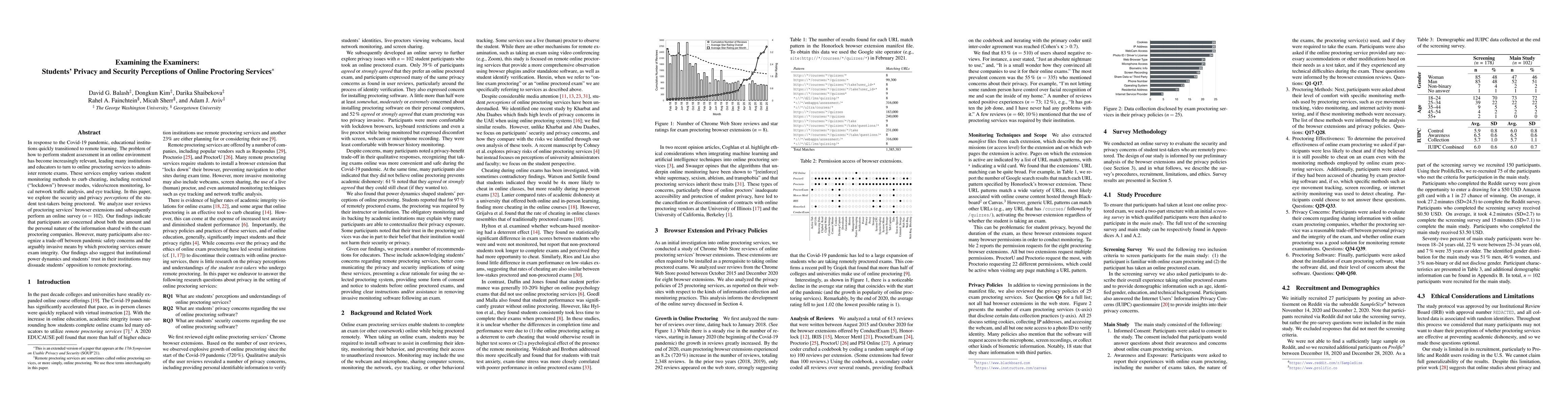 This study examines students' privacy and security perceptions of online proctoring services used for remote exams during the Covid-19 pandemic. Findings from user reviews and a survey reveal significant concerns about data sharing and invasive monitoring, yet many students acknowledge the necessity of these measures for exam integrity amidst safety concerns.