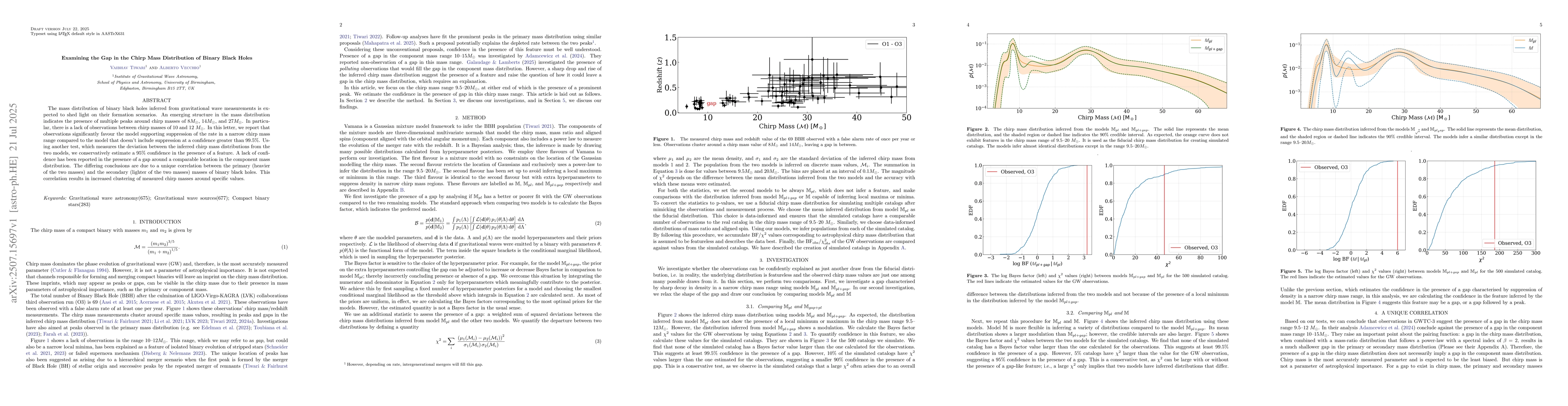The paper introduces a novel approach to model comparison using both Bayes factors and χ² statistics to identify a potential gap in the chirp mass distribution of binary black holes, providing a more robust assessment of the feature's presence.