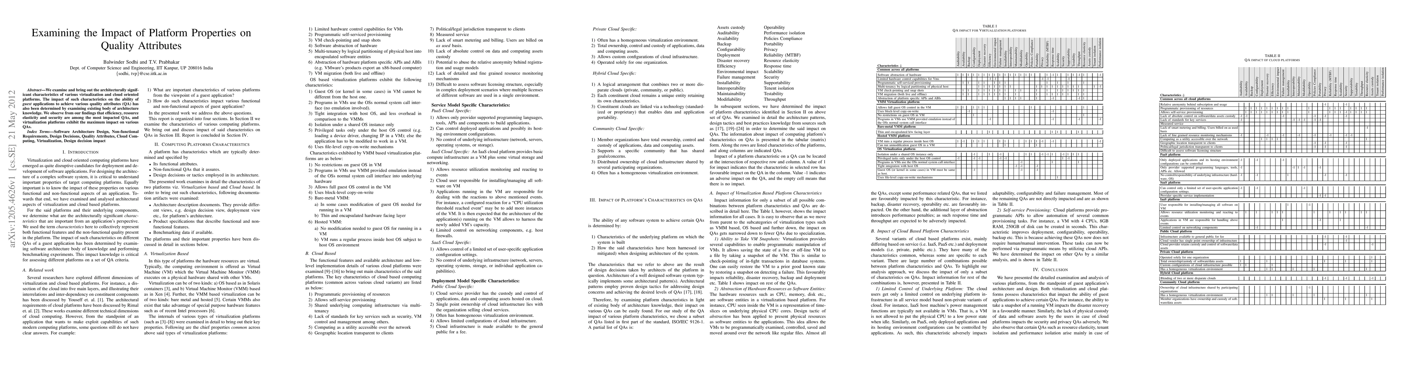The paper presents a detailed examination of platform characteristics and their impact on quality attributes, providing a valuable resource for architects and designers.