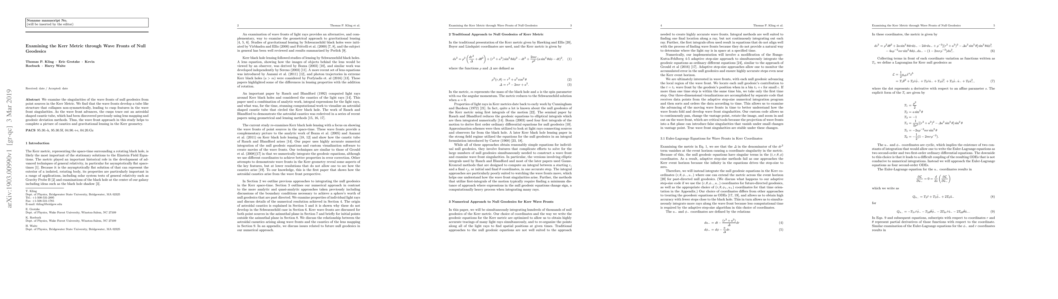 This study investigates the wave fronts of null geodesics in the Kerr Metric, revealing that they form tube-like structures with cusp features due to non-symmetric collapses. The cusps trace out an astroidal caustic tube, reinforcing understanding of caustics and gravitational lensing in Kerr geometry.