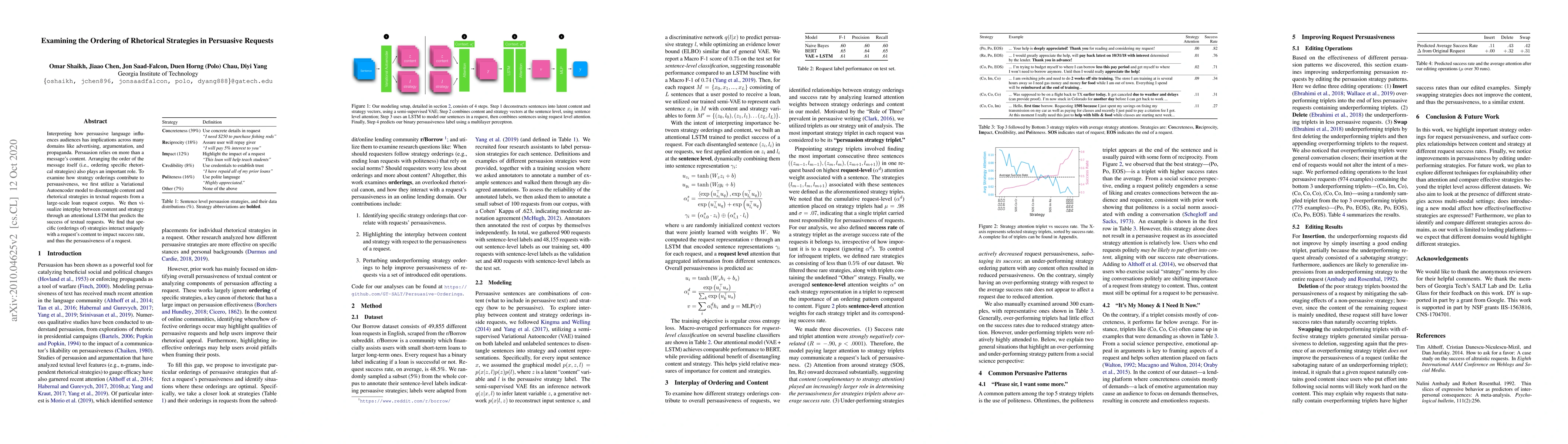 Interpreting how persuasive language influences audiences has implications across many domains like advertising, argumentation, and propaganda. Persuasion relies on more than a message's content. Arranging the order of the message itself (i.e., ordering specific rhetorical strategies) also plays an important role. To examine how strategy orderings contribute to persuasiveness, we first utilize a Variational Autoencoder model to disentangle content and rhetorical strategies in textual requests from a large-scale loan request corpus. We then visualize interplay between content and strategy through an attentional LSTM that predicts the success of textual requests. We find that specific (orderings of) strategies interact uniquely with a request's content to impact success rate, and thus the persuasiveness of a request.