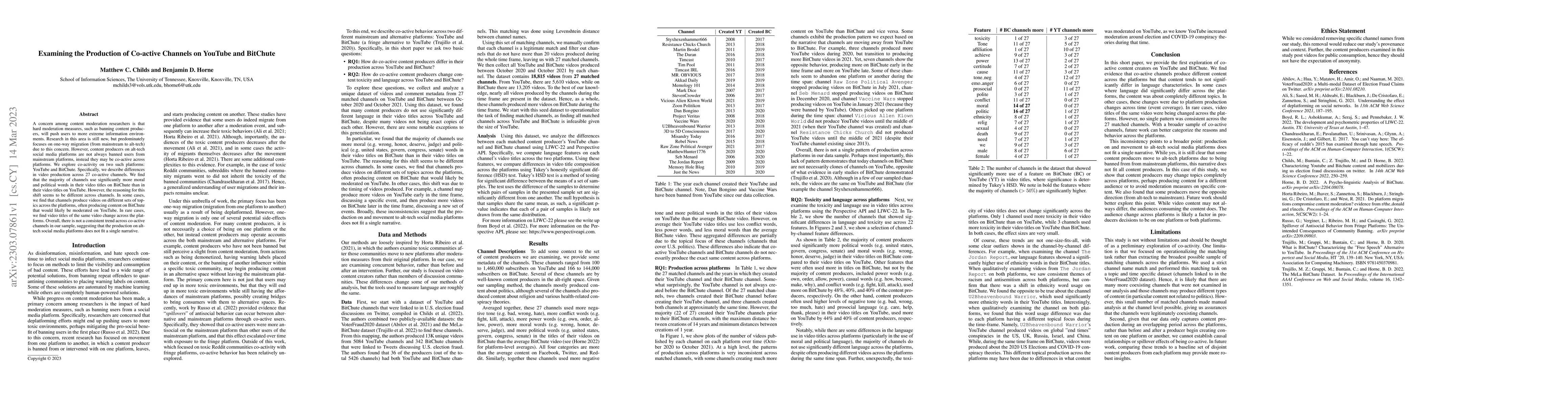 This study examines the production of co-active channels on YouTube and BitChute, finding that while most channels use more moral and political language on BitChute, the reasons for this shift vary, with some producing different content on each platform and others altering video titles to avoid moderation.