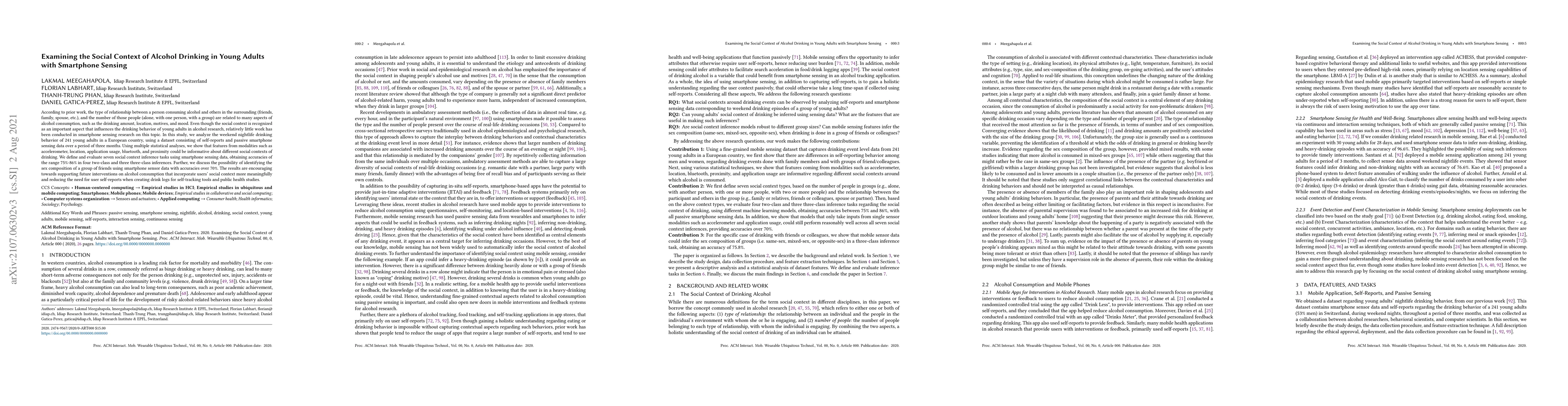 This study investigates how smartphone sensing data can reveal the social context of alcohol consumption among young adults in Switzerland, finding that features like accelerometer data and proximity information can infer social context with 75%-86% accuracy. The research suggests potential for enhancing alcohol consumption interventions and reducing reliance on self-reports.