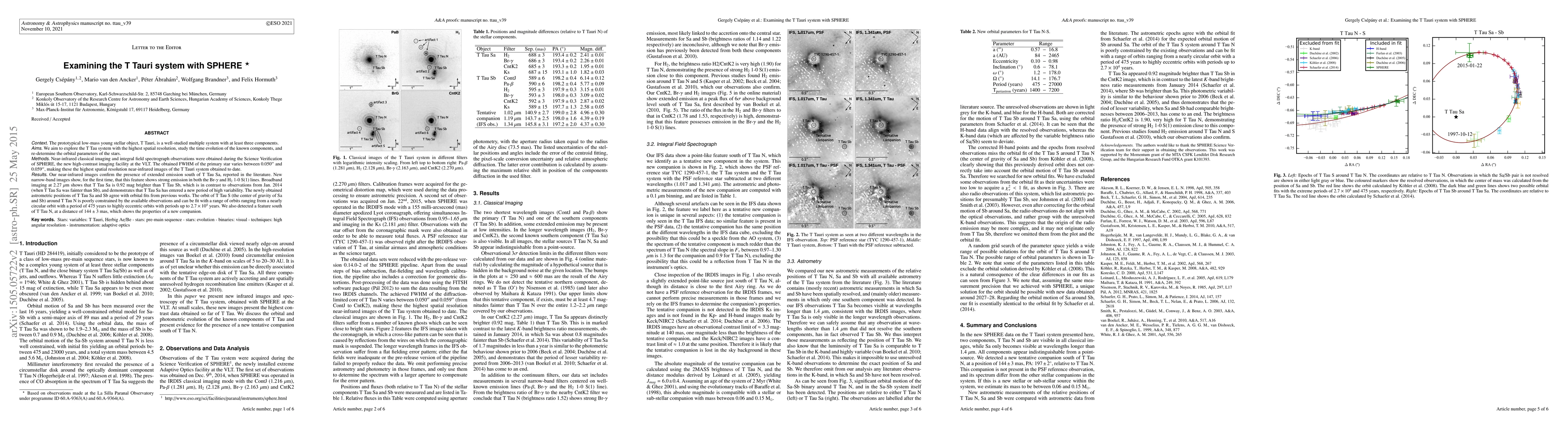 Context. The prototypical low-mass young stellar object, T Tauri, is a well-studied multiple system with at least three components. Aims. We aim to explore the T Tau system with the highest spatial resolution, study the time evolution of the known components, and re-determine the orbital parameters of the stars. Methods. Near-infrared classical imaging and integral field spectrograph observations were obtained during the Science Verification of SPHERE, the new high-contrast imaging facility at the VLT. The obtained FWHM of the primary star varies between 0.050" and 0.059", making these the highest spatial resolution near-infrared images of the T Tauri system obtained to date. Results. Our near-infrared images confirm the presence of extended emission south of T Tau Sa, reported in the literature. New narrow-band images show, for the first time, that this feature shows strong emission in both the Br-{\gamma} and H2 1-0 S(1) lines. Broadband imaging at 2.27 {\mu}m shows that T Tau Sa is 0.92 mag brighter than T Tau Sb, which is in contrast to observations from Jan. 2014 (when T Tau Sa was fainter than Sb), and demonstrates that T Tau Sa has entered a new period of high variability. The newly obtained astrometric positions of T Tau Sa and Sb agree with orbital fits from previous works. The orbit of T Tau S (the center of gravity of Sa and Sb) around T Tau N is poorly constrained by the available observations and can be fit with a range of orbits ranging from a nearly circular orbit with a period of 475 years to highly eccentric orbits with periods up to 2.7*10^4 years. We also detected a feature south of T Tau N, at a distance of $144 \pm 3$ mas, which shows the properties of a new companion.