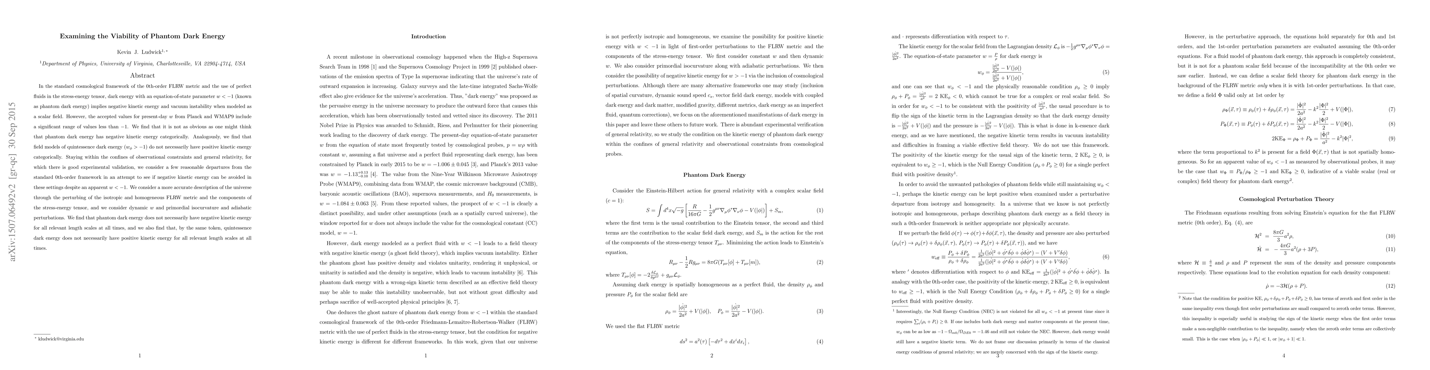 This paper examines the viability of phantom dark energy in cosmology, questioning the assumption that it inherently possesses negative kinetic energy and leads to vacuum instability. It explores modifications to the standard FLRW metric, dynamic equation-of-state parameters, and perturbations, finding that neither phantom nor quintessence dark energy categorically exhibits extreme kinetic energy properties under certain extended models.
