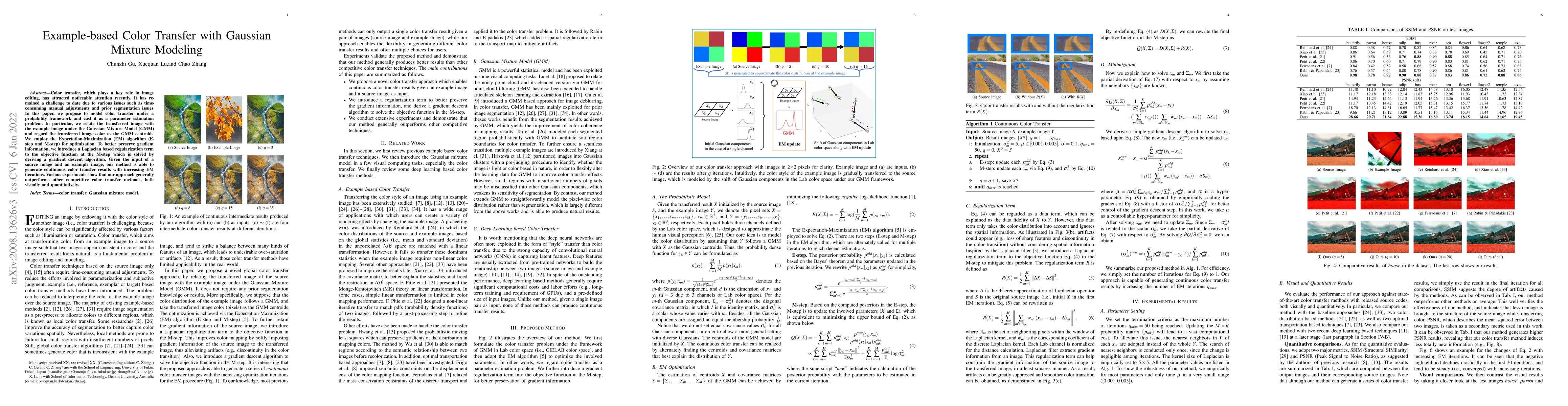 Researchers propose a new method for color transfer using Gaussian Mixture Modeling, achieving better results visually and quantitatively than existing methods.