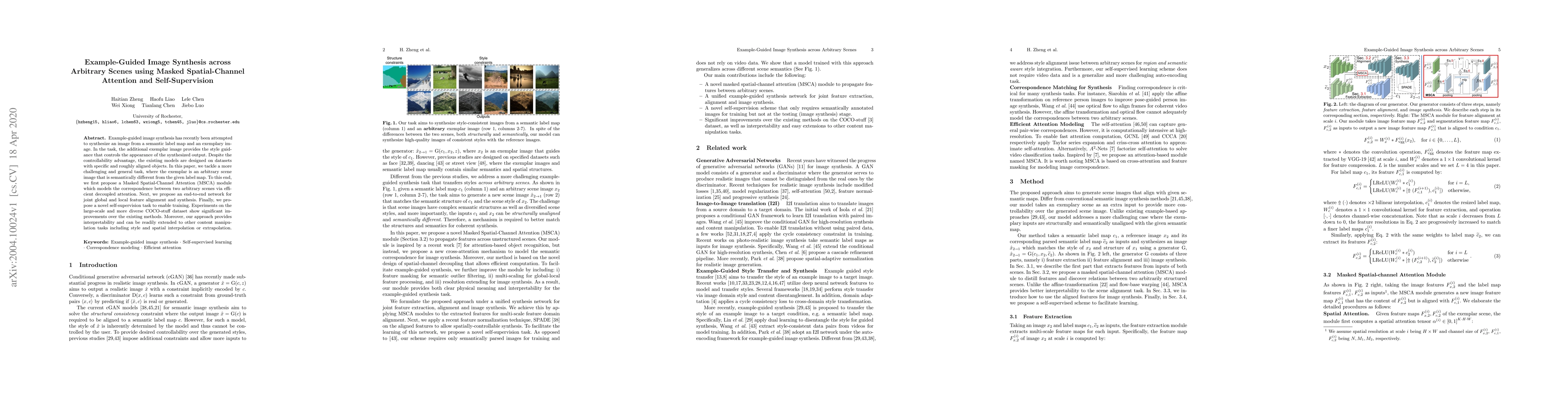 This paper proposes a Masked Spatial-Channel Attention module and an end-to-end network for example-guided image synthesis across arbitrary scenes, enabling style guidance from diverse exemplars. The approach demonstrates significant improvements on the COCO-stuff dataset and offers interpretability for various content manipulation tasks.