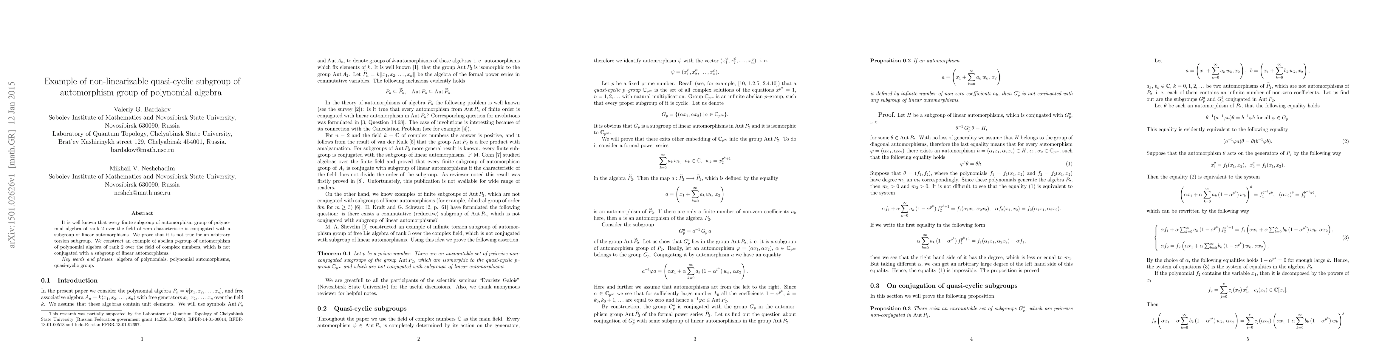 This paper demonstrates that not all finite torsion subgroups of the automorphism group of polynomial algebra of rank 2 over the complex field are conjugated with linear subgroups. It constructs an example of a non-linearizable quasi-cyclic subgroup of such automorphisms.