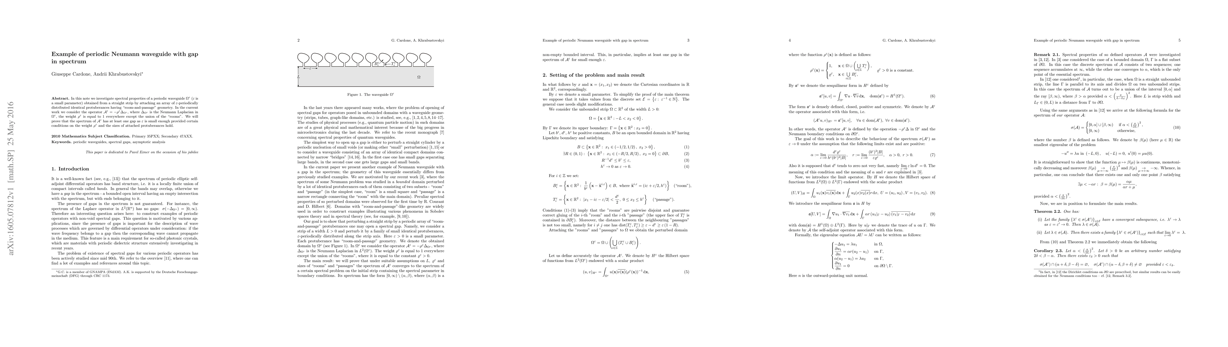 This paper examines the spectral properties of a periodic waveguide with small perturbations, showing that the Neumann Laplacian operator has at least one spectral gap when certain conditions on the weight and protuberance sizes are met. The findings are dedicated to Pavel Exner's 70th birthday.