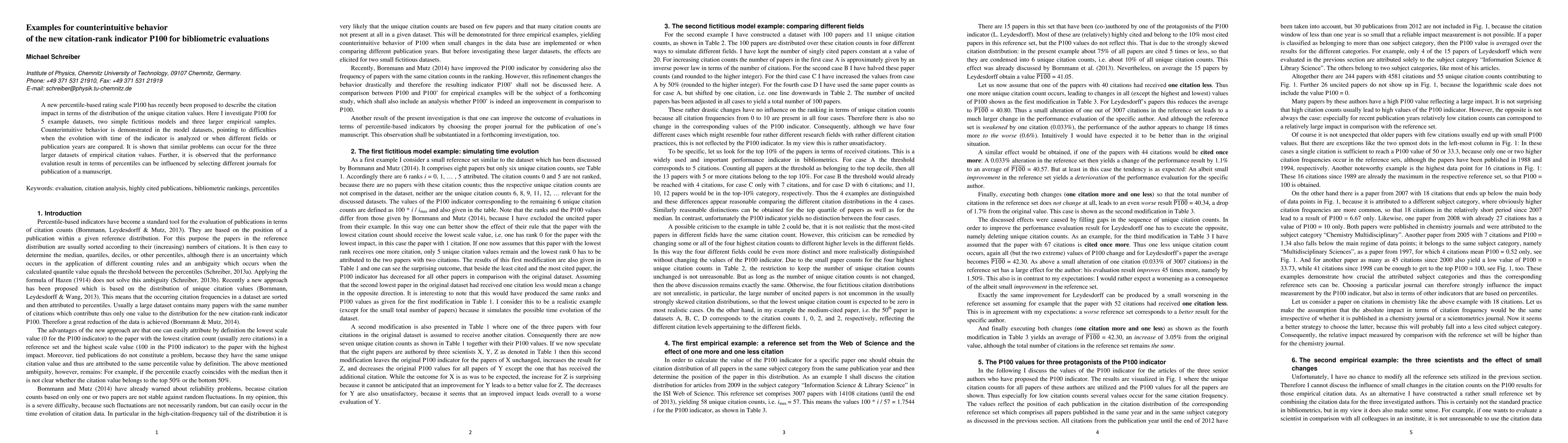 This paper examines the new citation-rank indicator P100, revealing counterintuitive behavior in both simple models and larger empirical datasets. It highlights issues in analyzing temporal evolution and comparing different fields or publication years, and notes that journal selection can influence performance evaluation.