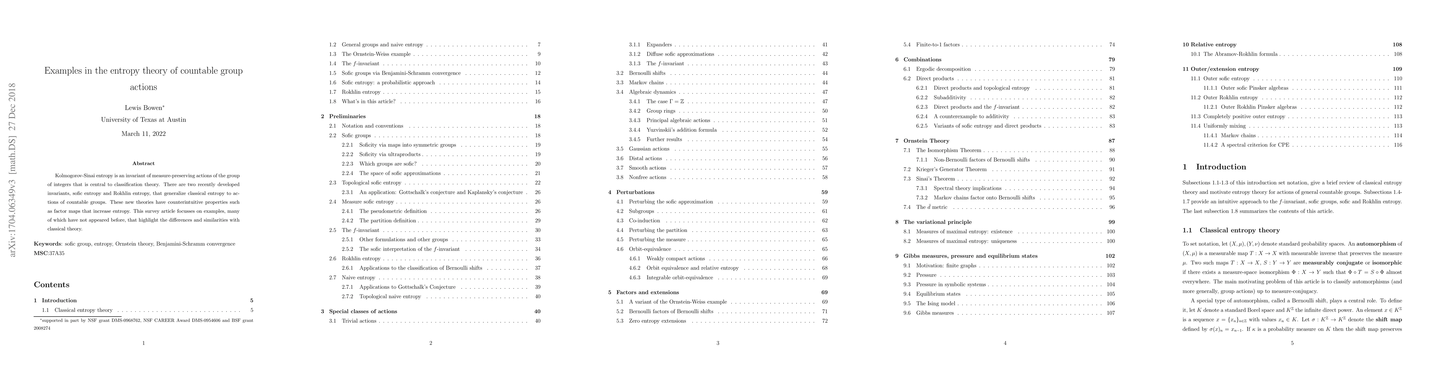 This paper surveys novel examples illustrating the unique properties of sofic and Rokhlin entropies, contrasting them with Kolmogorov-Sinai entropy in countable group actions and highlighting their non-intuitive behaviors, such as factor maps that can increase entropy.