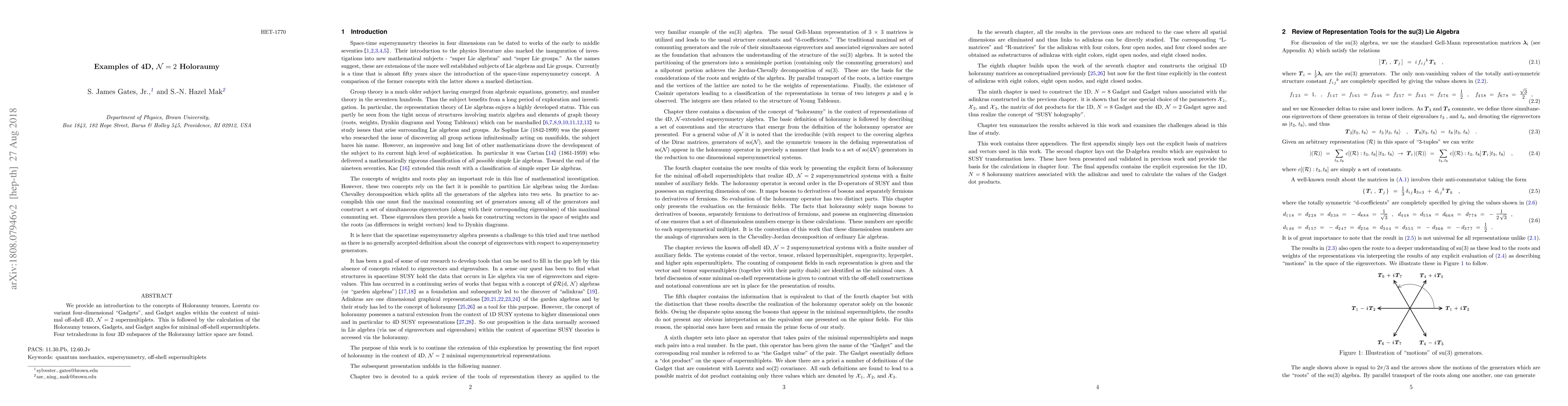 This paper introduces holoraumy tensors and Lorentz covariant "Gadgets" in 4D N=2 supermultiplets, followed by calculations of holoraumy tensors, Gadgets, and Gadget angles for minimal off-shell supermultiplets, revealing four tetrahedrons in the Holoraumy lattice space.