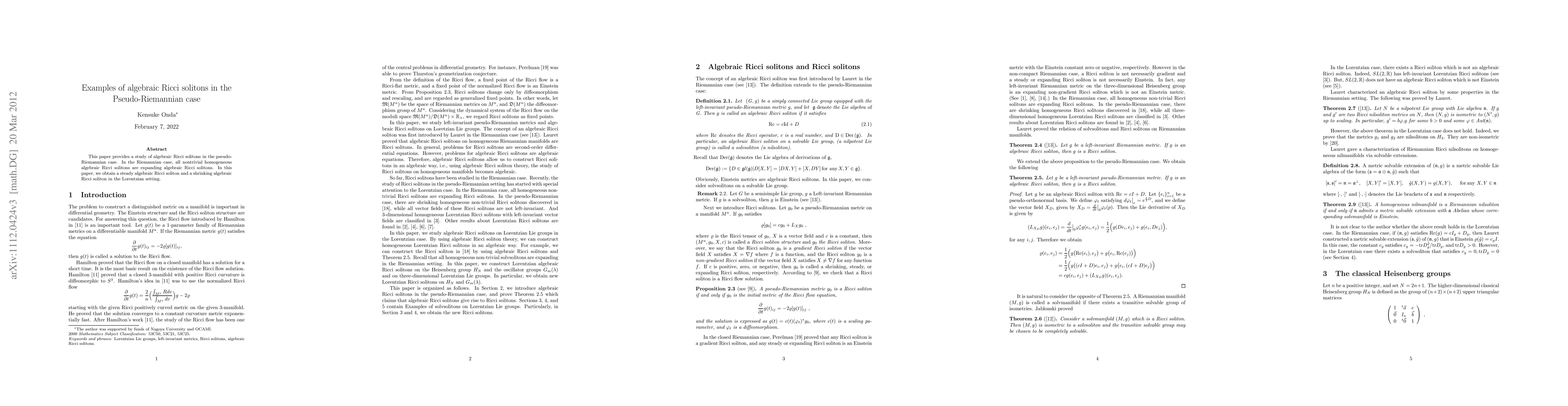 This paper investigates algebraic Ricci solitons within the pseudo-Riemannian framework, identifying both steady and shrinking solitons in the Lorentzian setting, contrasting with the exclusively expanding solitons in the Riemannian case.