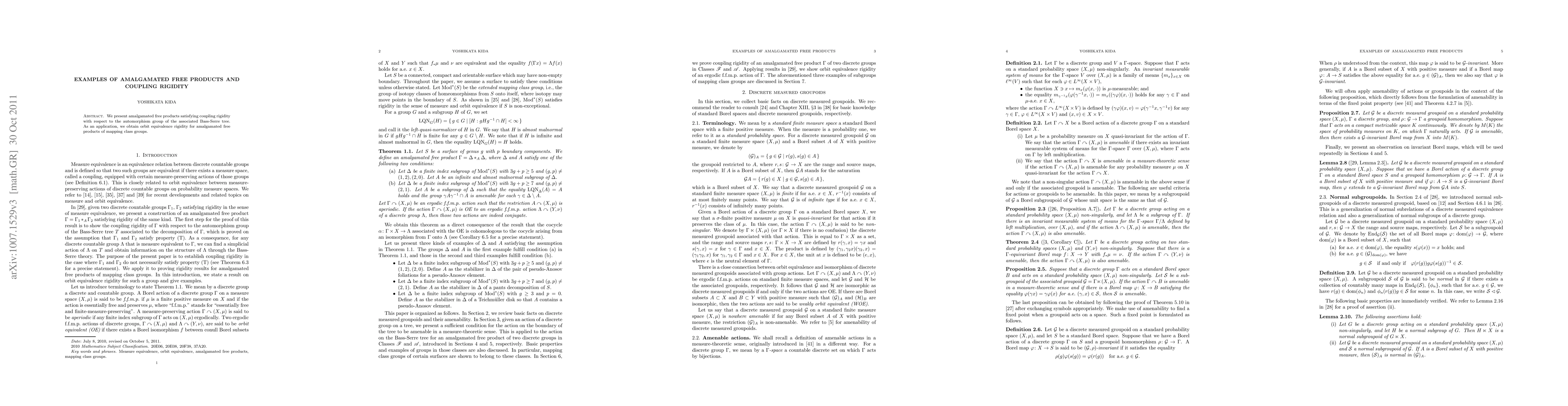 This paper discusses amalgamated free products demonstrating coupling rigidity concerning the automorphism group of the related Bass-Serre tree, leading to orbit equivalence rigidity for amalgamated free products of mapping class groups.