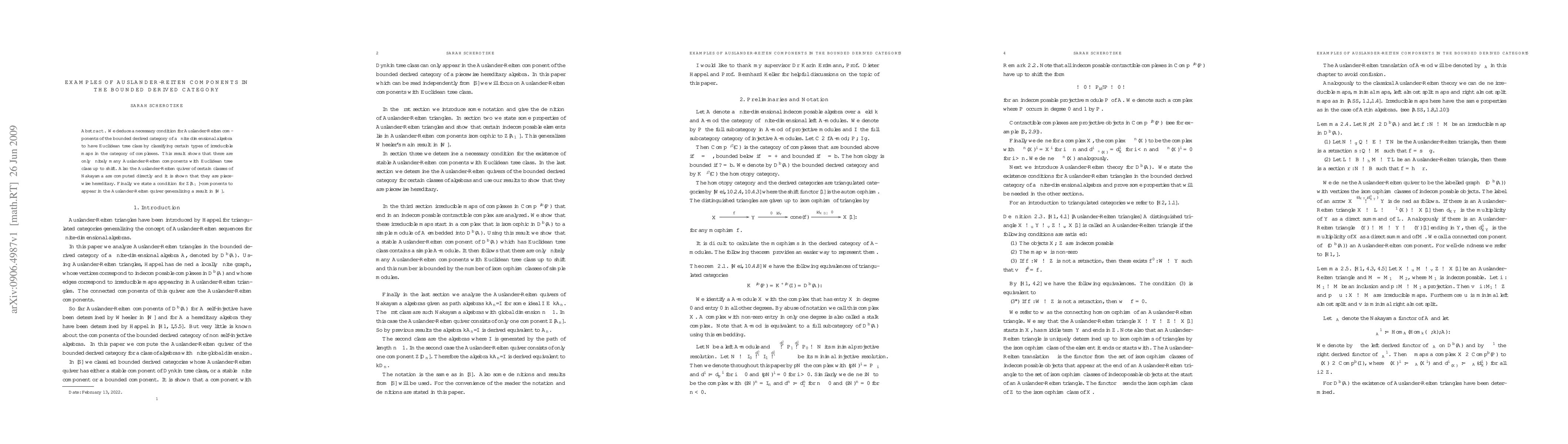 We deduce a necessary condition for Auslander-Reiten components of the bounded derived category of a finite dimensional algebra to have Euclidean tree class by classifying certain types of irreducible maps in the category of complexes. This result shows that there are only finitely many Auslander-Reiten components with Euclidean tree class up to shift. Also the Auslander-Reiten quiver of certain classes of Nakayama are computed directly and it is shown that they are piecewise hereditary. Finally we state a condition for $\Z[A_{\infty}]$-components to appear in the Auslander-Reiten quiver generalizing a result in \cite{W}.