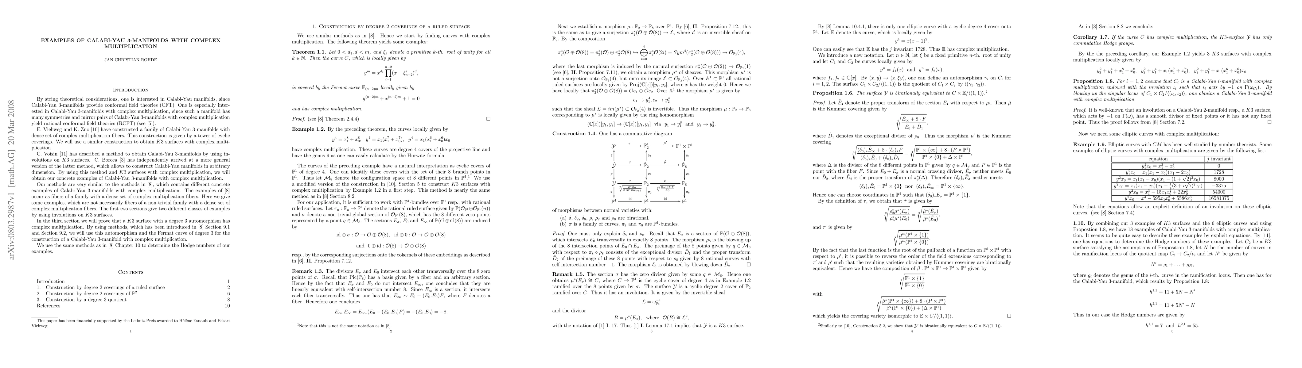Summary: This paper presents specific instances of Calabi-Yau 3-manifolds that exhibit complex multiplication, contributing to the understanding of their geometric and algebraic properties.