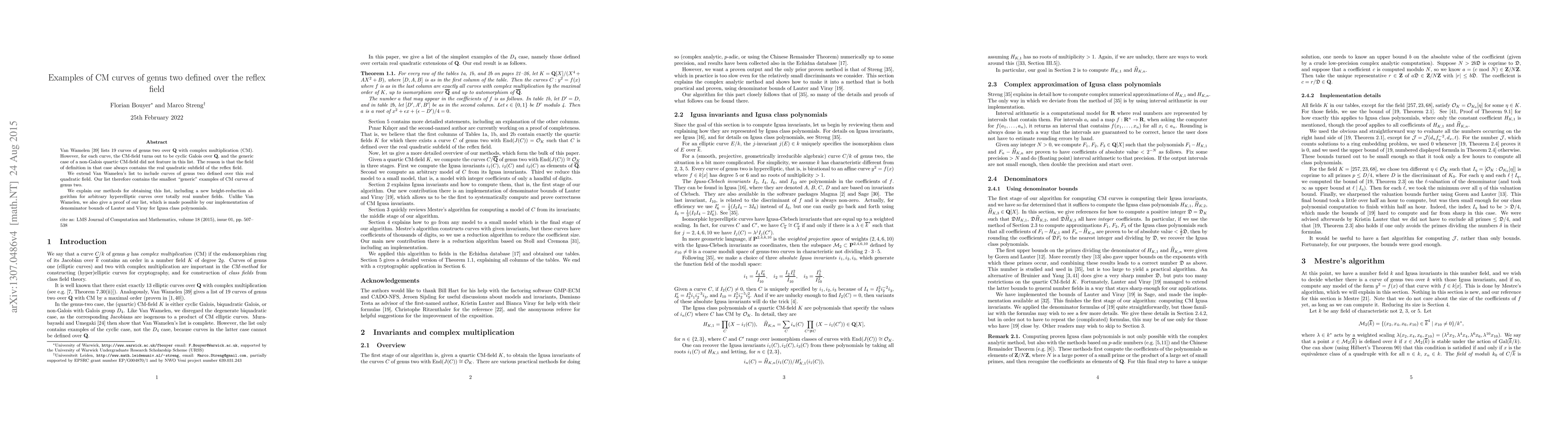 This paper extends van Wamelen's list of genus two curves with complex multiplication (CM) to include those defined over the real quadratic subfield of the reflex field. The authors introduce a new height-reduction algorithm for hyperelliptic curves and provide a proof using Igusa class polynomials.