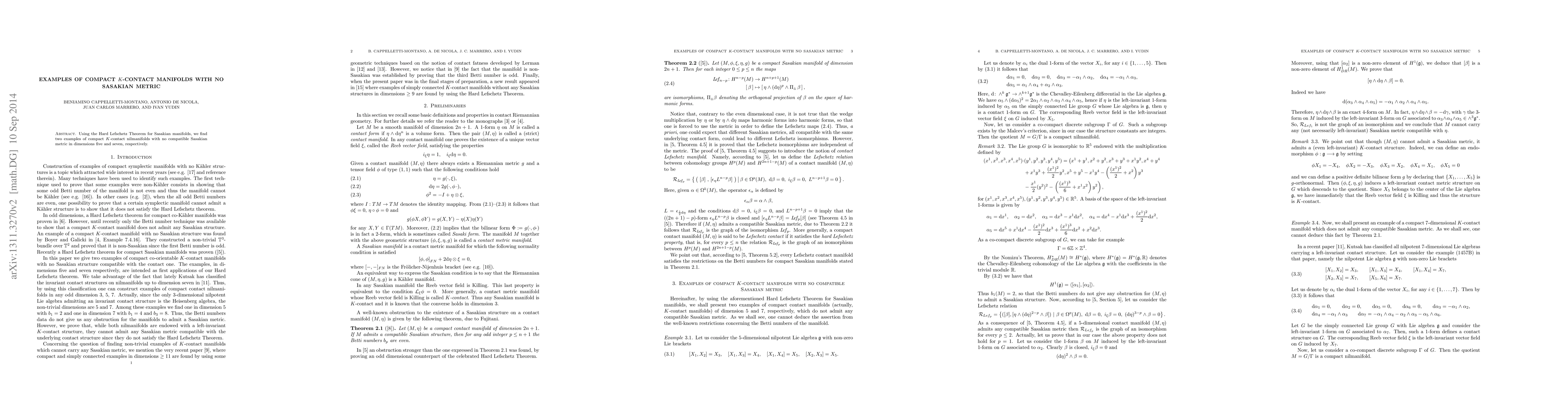 This paper presents two examples of compact K-contact nilmanifolds in dimensions five and seven that do not support a compatible Sasakian metric, using the Hard Lefschetz Theorem for Sasakian manifolds to demonstrate this.