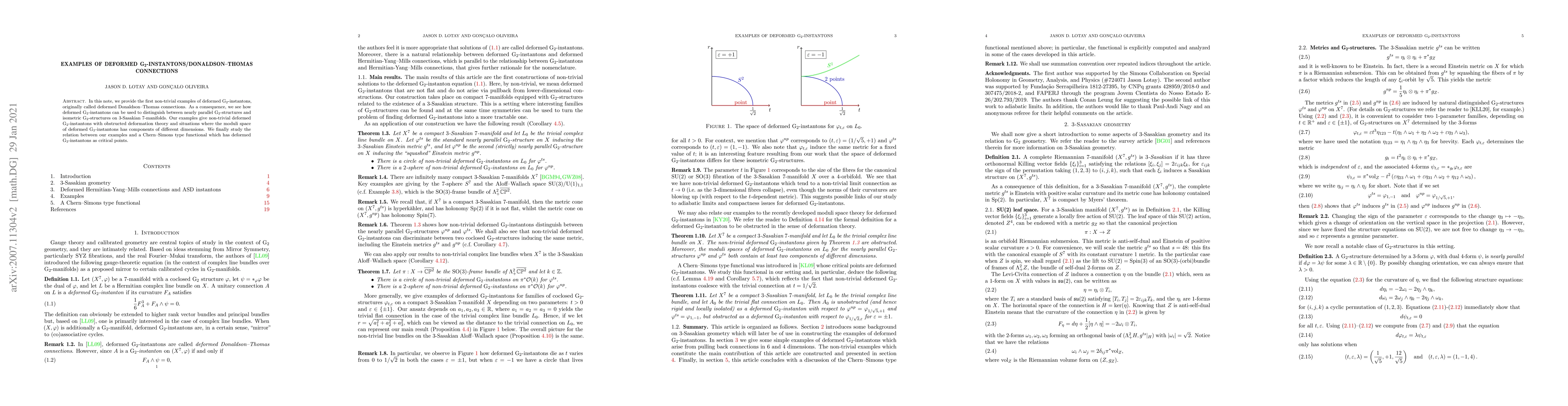 This paper presents the first non-trivial examples of deformed G_2-instantons and explores their application in distinguishing between nearly parallel and isometric G_2-structures on 3-Sasakian 7-manifolds, revealing cases with obstructed deformation theory and varied moduli space dimensions. It also investigates the connection between these examples and a Chern-Simons type functional.