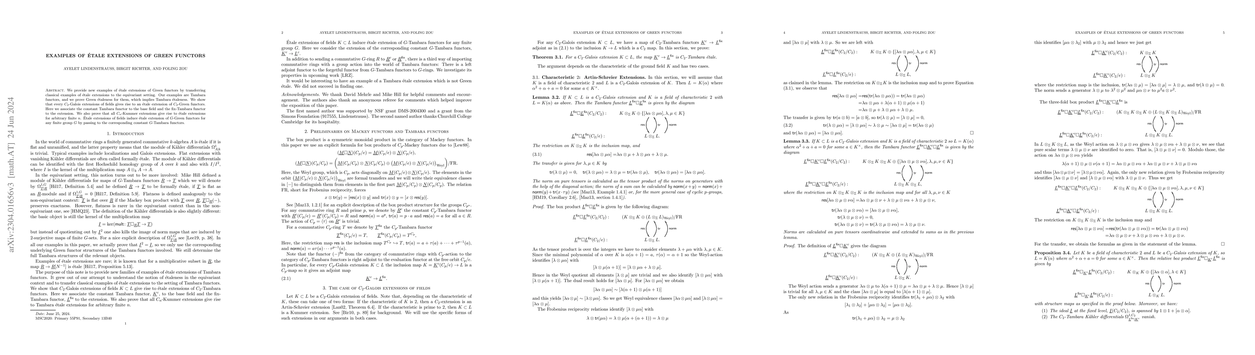 The paper provides new examples of 'etale extensions of Green functors by transferring classical examples to the equivariant setting, focusing on Tambara functors and proving Green 'etaleness for them, which implies Tambara 'etaleness.