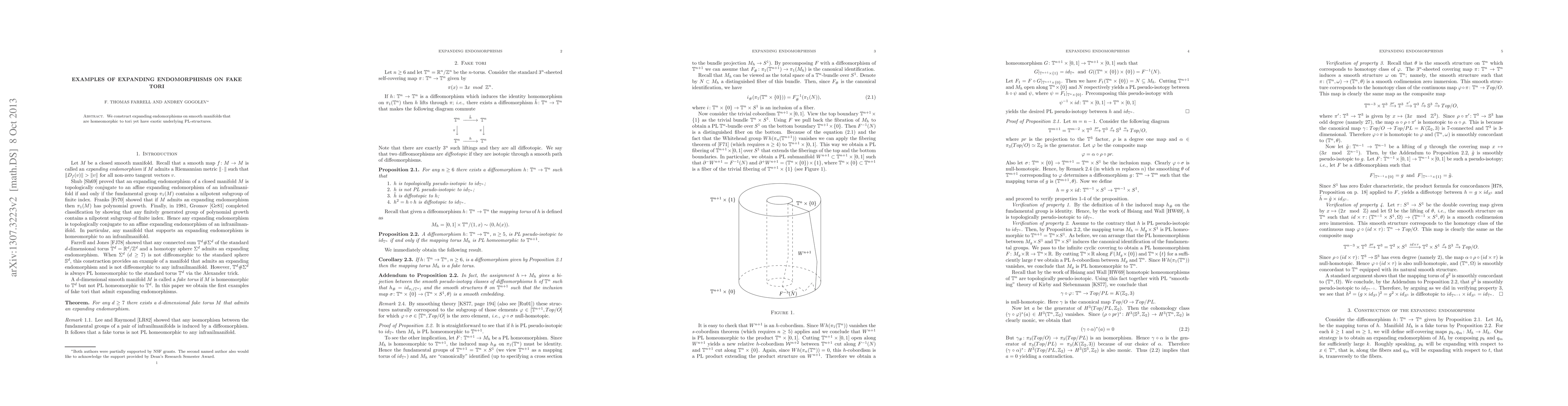 Summary: This paper constructs expanding endomorphisms on smooth manifolds that mimic tori but possess exotic piecewise linear structures, exploring their dynamical properties. The study highlights the unique behavior of these endomorphisms in non-standard topological settings.