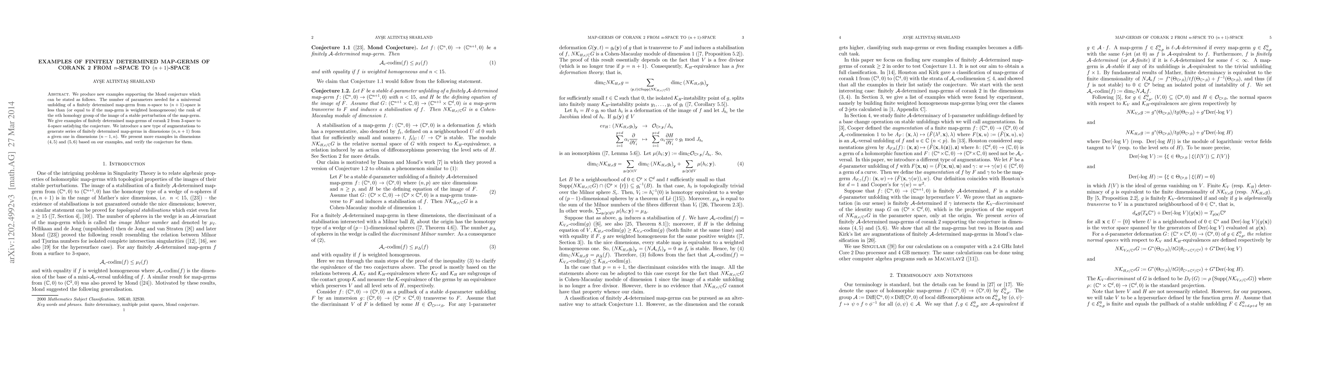 We produce new examples supporting the Mond conjecture which can be stated as follows. The number of parameters needed for a miniversal unfolding of a finitely determined map-germ from $n$-space to $(n+1)$-space is less than (or equal to if the map-germ is weighted homogeneous) the rank of the $n$th homology group of the image of a stable perturbation of the map-germ. We give examples of finitely determined map-germs of corank 2 from 3-space to 4-space satisfying the conjecture. We introduce a new type of augmentations to generate series of finitely determined map-germs in dimensions $(n,n+1)$ from a given one in dimensions $(n-1,n)$. We present more examples in dimensions $(4,5)$ and $(5,6)$ based on our examples, and verify the conjecture for them.