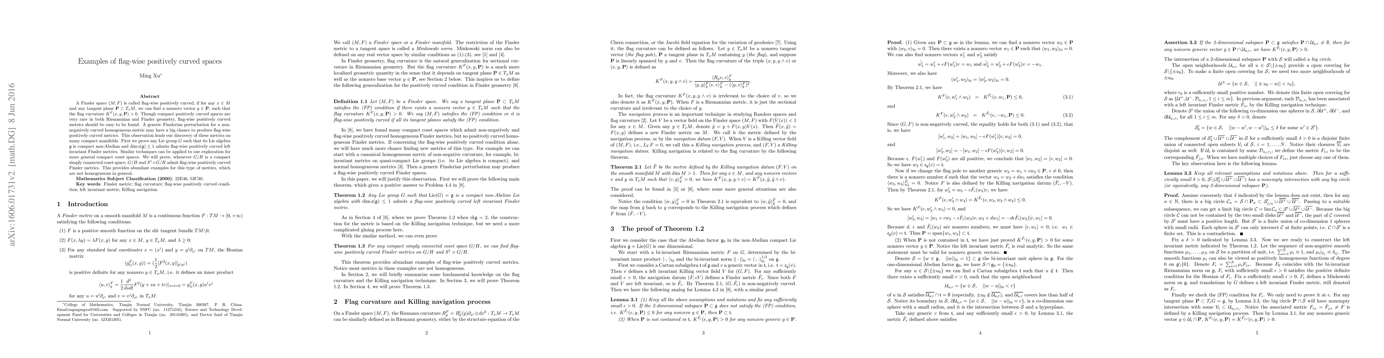 This paper explores flag-wise positively curved Finsler spaces, demonstrating that many compact manifolds, including certain Lie groups and coset spaces, admit such metrics. It shows that a generic perturbation of non-negatively curved homogeneous metrics can yield flag-wise positively curved metrics, offering numerous examples beyond the rare compact positively curved spaces.