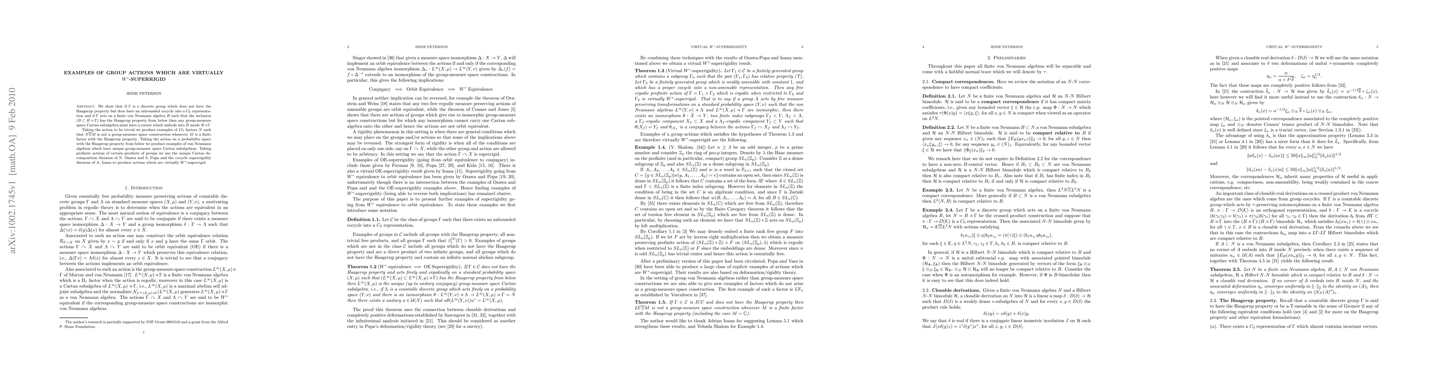 We show that if G is a discrete group which does not have the Haagerup property but does have an unbounded cocycle into a C_0 representation and if G acts on a finite von Neumann algebra B such that the inclusion B \subset (B \rtimes G) has the Haagerup property from below then any group-measure space Cartan subalgebra must have a corner which embeds into B inside B \rtimes G. Taking the action to be trivial we produce examples of II_1 factors N such that N \otimes M is not a group-measure space construction whenever M is a finite factor with the Haagerup property. Taking the action on a probability space with the Haagerup property from below we produce examples of von Neumann algebras which have unique group-measure space Cartan subalgebras. Taking profinite actions of certain products of groups we use the unique Cartan decomposition theorem of N. Ozawa and S. Popa and the cocycle superrigidity theorem of A. Ioana to produce actions which are virtually W*-superrigid.