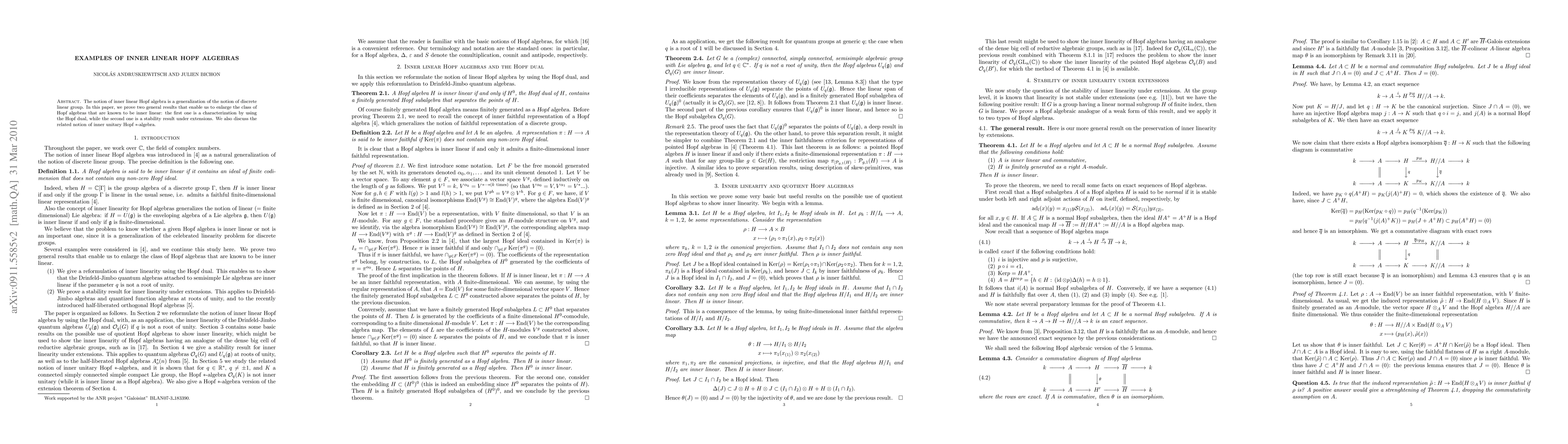 This paper generalizes the concept of inner linear Hopf algebras, proving a characterization via Hopf duals and a stability result under extensions. It also explores the related notion of inner unitary Hopf *-algebras.