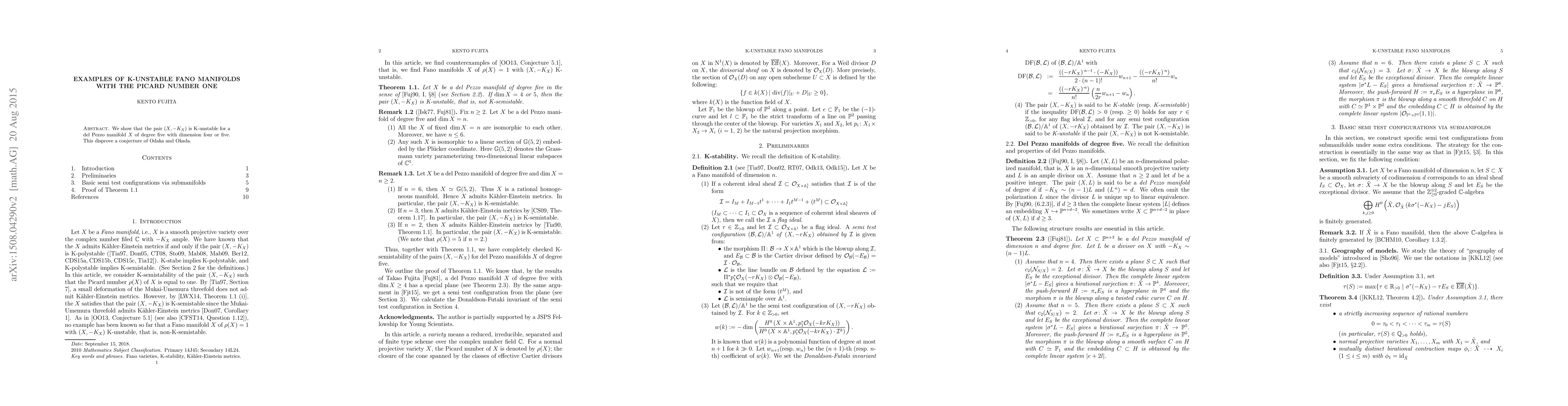 Researchers disprove a conjecture about K-unstable Fano manifolds of degree five with dimension four or five. They show that the manifold is unstable for a specific pair (X, -K_X).
