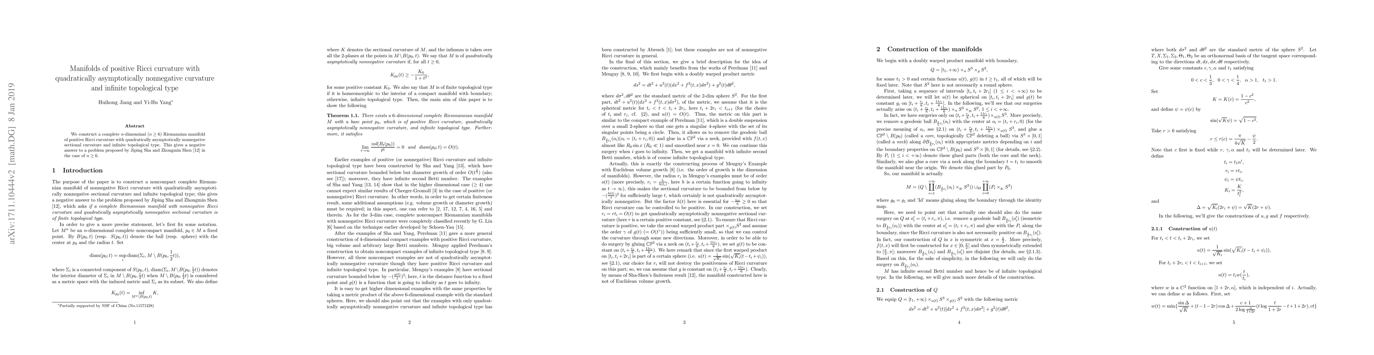 Researchers created a manifold with positive Ricci curvature, infinitely curved infinity, and infinite topology, contradicting a conjecture for n >= 6.