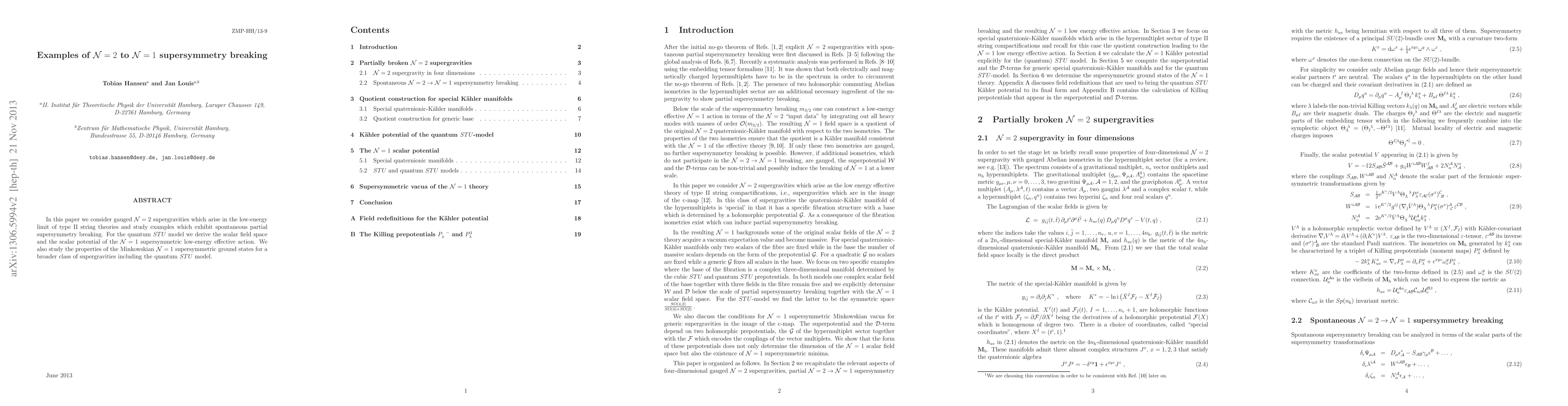 Researchers studied supersymmetry breaking in N=2 supergravities, focusing on quantum STU models and their scalar field spaces, to better understand the conditions for spontaneous partial supersymmetry breaking.