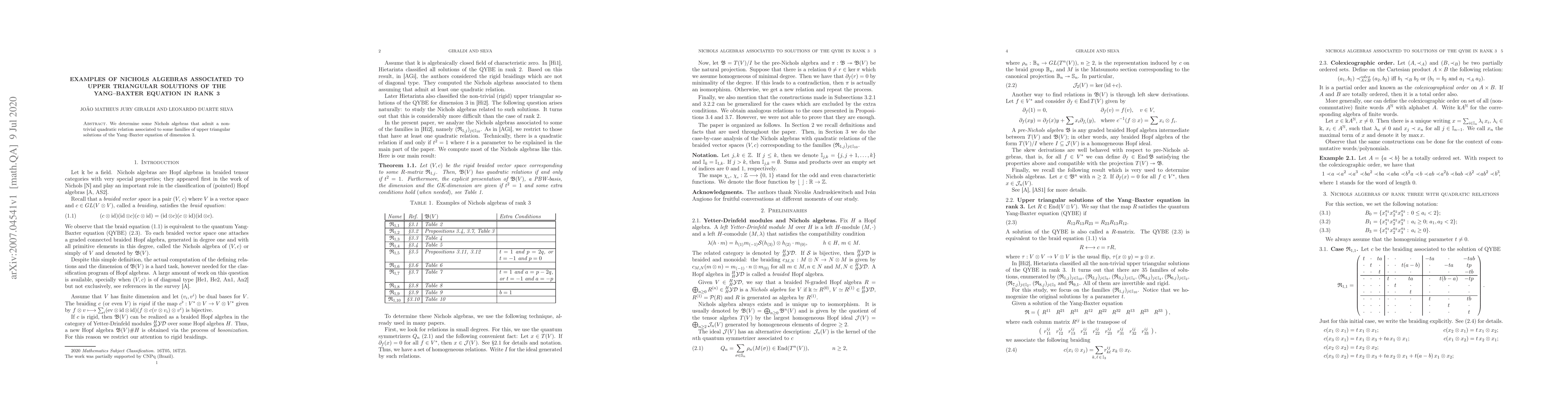 We determine some Nichols algebras that admit a non-trivial quadratic relation associated to some families of upper triangular solutions of the Yang-Baxter equation of dimension 3.