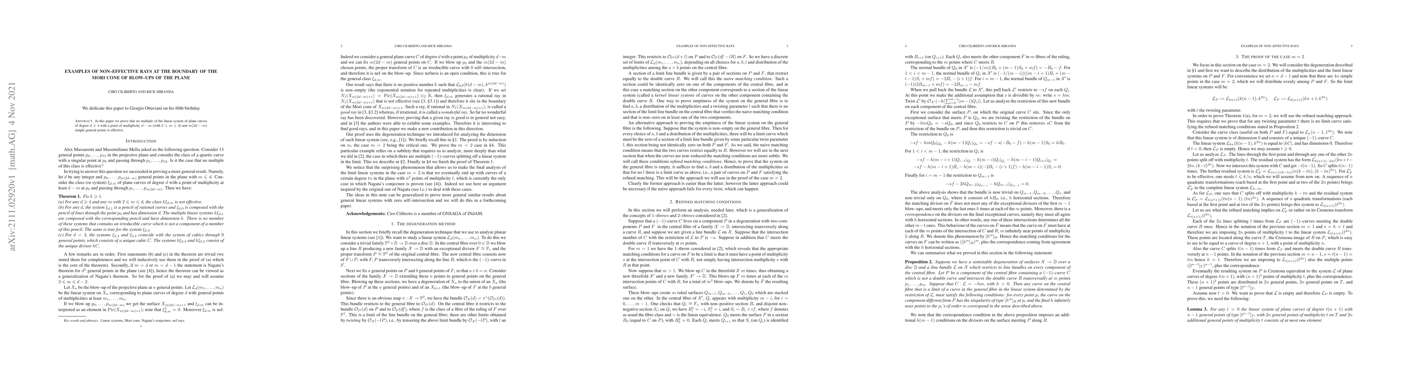 In this paper we prove that no multiple of the linear system of plane curves of degree $d\geq 4$ with a point of multiplicity $d-m$ (with $2 \leq m \leq d$) and $m(2d-m)$ simple general points is effective.