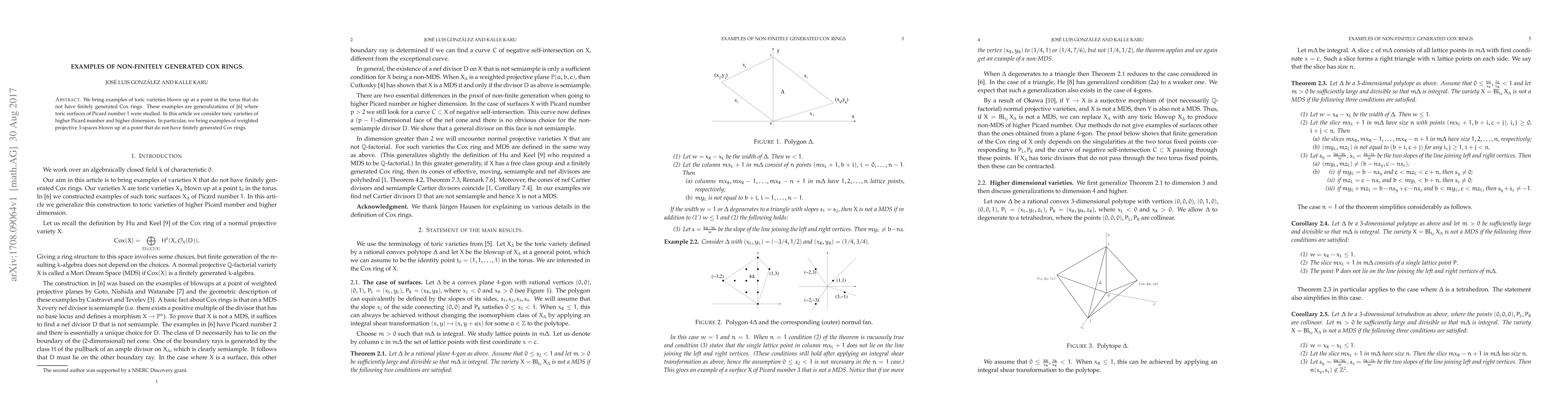 This paper presents examples of toric varieties, including higher-dimensional ones, that are blown up at a point in the torus but do not possess finitely generated Cox rings, extending previous studies on toric surfaces with Picard number 1.