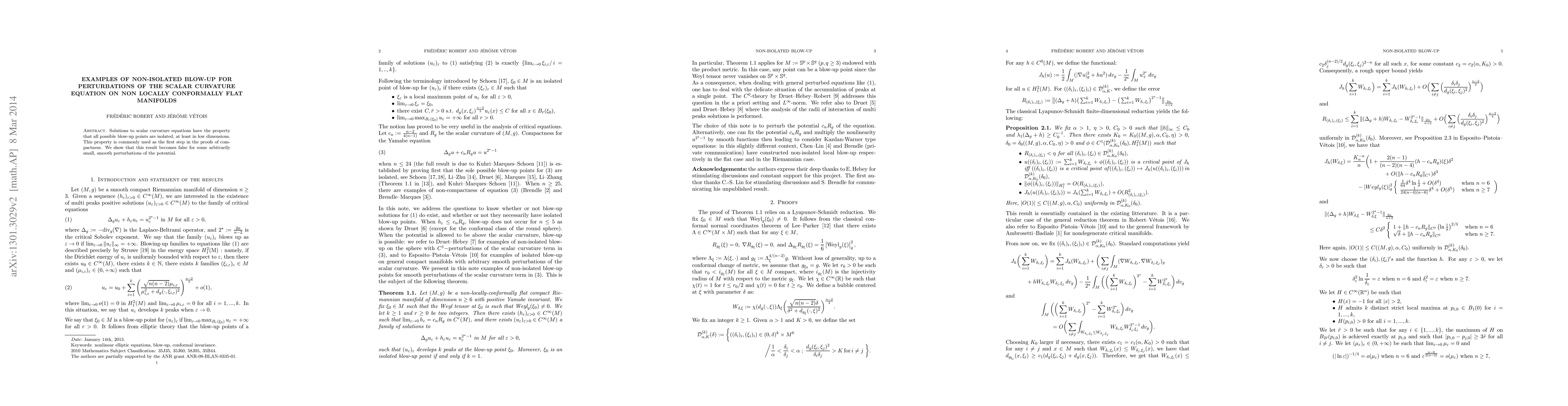 Solutions to scalar curvature equations have the property that all possible blow-up points are isolated, at least in low dimensions. This property is commonly used as the first step in the proofs of compactness. We show that this result becomes false for some arbitrarily small, smooth perturbations of the potential.