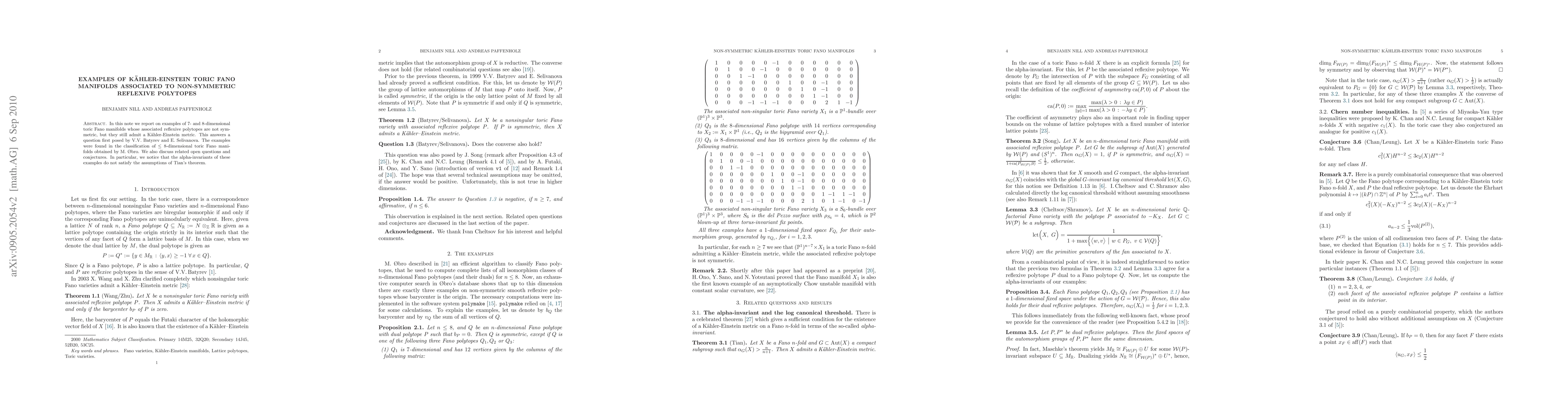 This paper presents examples of 7- and 8-dimensional non-symmetric toric Fano manifolds that admit Kähler-Einstein metrics, addressing a question posed by Batyrev and Selivanova. These examples are derived from the classification of toric Fano manifolds up to dimension 8 by Oebro.
