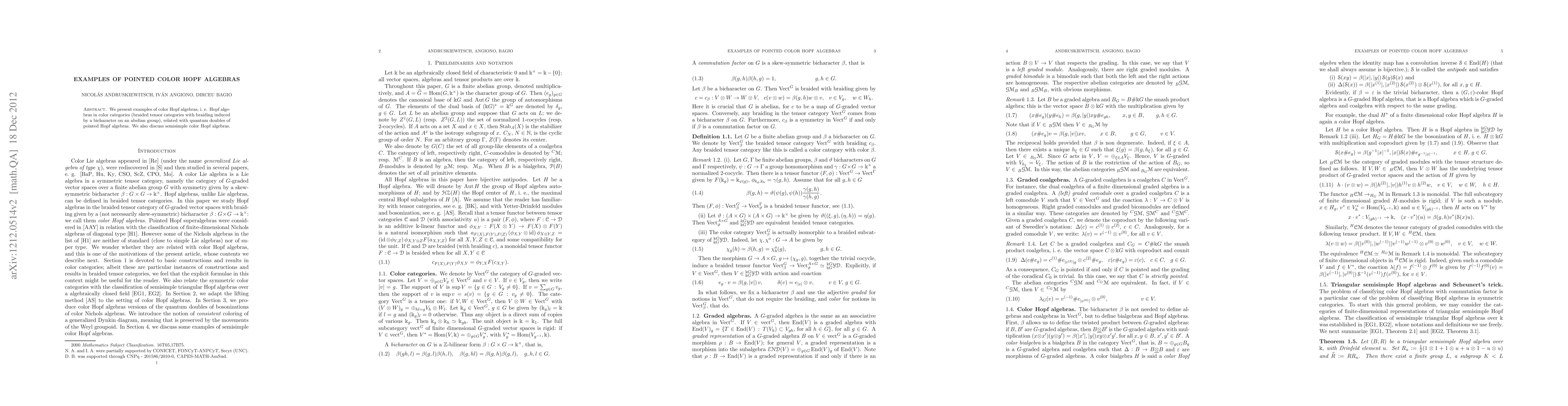 This paper provides examples of color Hopf algebras linked to the quantum doubles of pointed Hopf algebras and explores semisimple variants within the context of braided tensor categories. These examples illustrate the intricate structure of Hopf algebras in color categories.